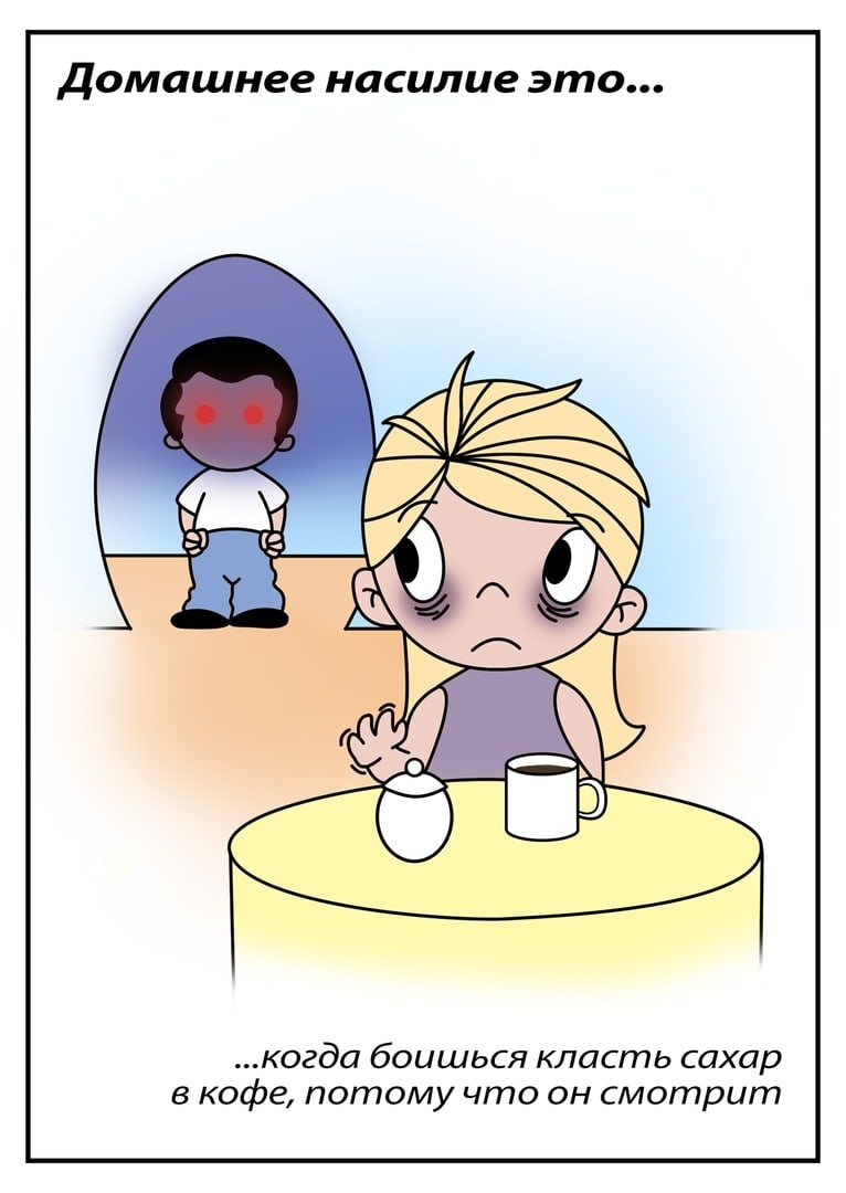 Изначально мы думали о том, как сделать так, чтобы женщинам в городе стало безопаснее, но так как нет финансирования, мы начали с малого. Вместе с коллегами из ТФИ «Гербера» запустили акцию «Домашнее Насилие Это». Серия иллюстрация, созданных по историям настоящих женщин, подписчиц, знакомых. Мы создали опрос и его результатом стало появление иллюстраций.