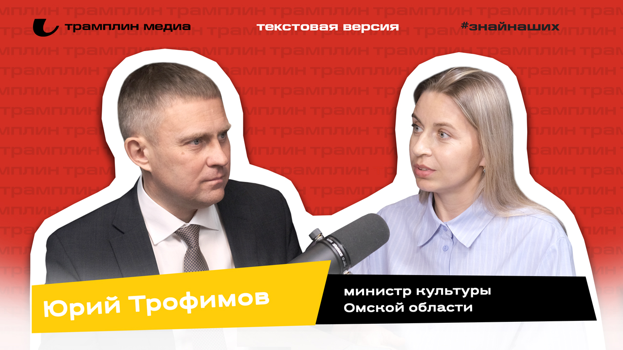 — Всем привет! Это медиа «Трамплин» с подкастом «Знай наших!». Сегодня у нас в гостях министр культуры Омской области Юрий Трофимов. Юрий Викторович, здравствуйте! Рада приветствовать вас и благодарю за то, что нашли в своём плотном графике время, чтобы прийти к нам.