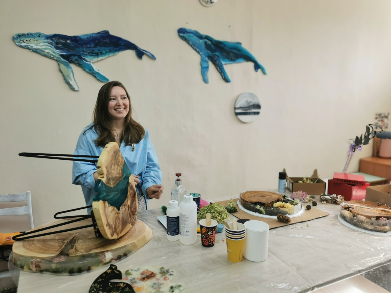 «Сосны, горы, река Катунь… Они будто звали. Я купила онлайн-курс и решила попробовать сделать стол. Хотела, чтобы в нём была сама Катунь — прозрачная, сильная, глубокая».