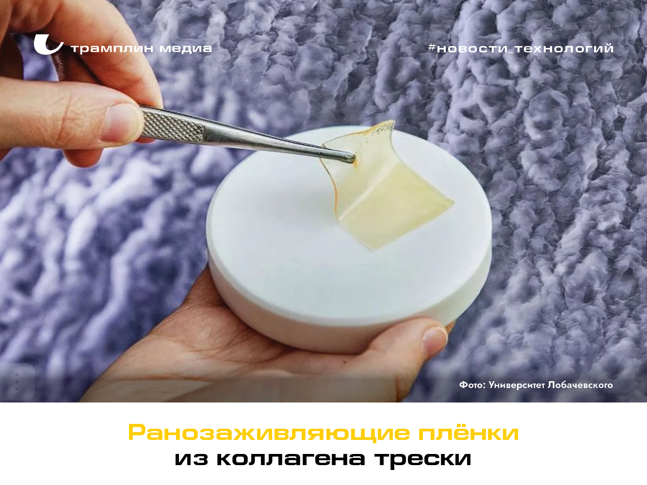 Учёные из Нижнего Новгорода разработали инновационную технологию создания регенеративных плёнок на основе коллагена, полученного из трески, которая превосходит аналоги из бычьего коллагена по эффективности. Разработка может найти широкое применение в регенеративной медицине для восстановления различных тканей организма.