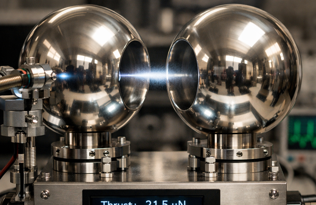 Новый энергоанализатор использует сферически вогнутые сетки вместо плоских. Такая конструкция захватывает весь поток заряженных капель, позволяя определить их скорость и энергию. Это особенно важно для двигателей, работающих с молекулярным веществом, а не с атомарным. В итоге исследователи получают точные данные о тяге и коэффициенте полезного действия.