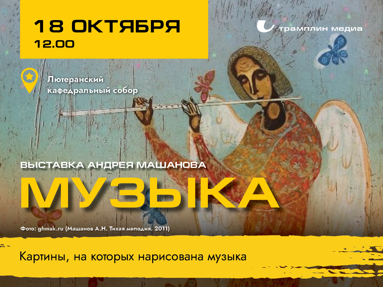 Картины, музыка и готические интерьеры Лютеранской кирхи – идеальное сочетание для выходного. Новая выставка известного в Омске художника, академика Российской Академии художеств, председателя Омского регионального отделения «Союза художников России», Андрея Машанова «Музыка» пройдёт в необычной для зрителя обстановке. В экспозиции предстанут лучшие работы мастера, в которых он показывает красоту природы и мира. На открытии выставки будет звучать живая музыка в исполнении Дмитрия Креймера. Вход свободный.