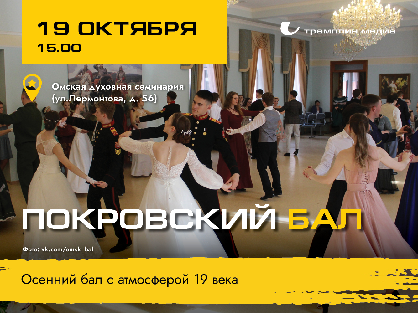 Традиционный Покровский бал состоится в это воскресенье – его организует отдел по делам молодёжи Омской епархии. Прийти могут все, кто хочет окунуться в атмосферу бала 19 века. В программе исторические показательные танцы, танцевальные мастер-классы, бальные игры и конкурсы, вокальные, музыкальные, театральные и хореографические номера, фотосессия, фуршет. Для участников бала есть возрастной ценз – от 14 до 35 лет, для гостей ограничений нет. Костюм не обязательно должен быть историческим, достаточно закрытой вечерней одежды в осенних тонах, из обязательных атрибутов – только перчатки как для дам, так и для кавалеров. Танцевальные навыки значения не имеют – можно прийти, даже если вы ни разу не танцевали. Подробные требования к дресс-коду и другие условия можно найти здесь, а зарегистрироваться здесь.