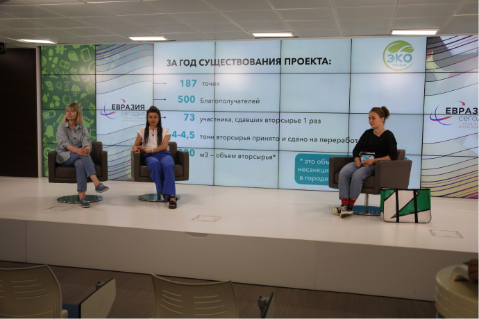 – «ЭКОТочка» – это мобильный приём вторсырья. Механика проста: есть люди, которые сортируют мусор дома. Когда они решают его сдать, заходят в нашу группу в ВКонтакте, там оставляют заявку, и через некоторое время к ним приезжает волонтёр. Он забирает вторсырьё, отвозит на временный склад, сортирует и потом всё это отдаётся в переработку. За год существования проекта мы накопили базу из 187 адресов – это семьи или организации, которые сдают нам вторсырьё в переработку. Одна девушка организовала пункт сбора в библиотеке, и читатели из соседних домов приносят ей крышечки, пластиковые бутылки и т. д. За год мы собрали около 4,5 тонн вторсырья, это объём небольшой свалки за городом.