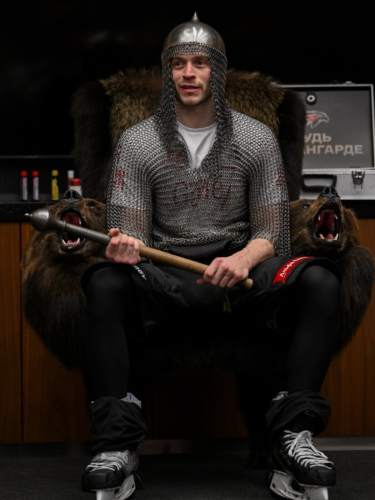 Попутно, кстати, сервисмены возят с собой кольчугу, шлем и топорик. Это атрибуты, которые достаются лучшему игроку «Авангарда» в отдельно взятой матче.