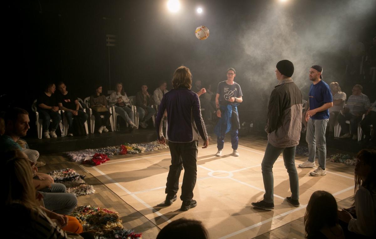 Играют спектакль в небольшом квадрате на 4 стороны. И это поразительно, как актёры умудряются держать внимание и отыгрывать всё для всех зрителей при таком непростом раскладе, не теряя контакта с публикой.