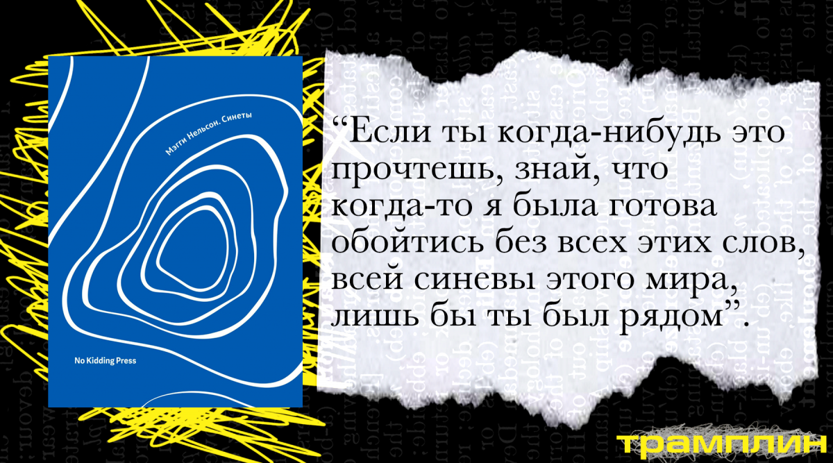 Иногда автофикшн показывает рефлексию через конкретные ситуации, обстоятельства или, как у Нельсон, цвета. «Синеты» — это не просто проработка травм, воспоминания и размышления, а история о том, как писательницу окружает синий цвет, и что этот цвет для неё значит.