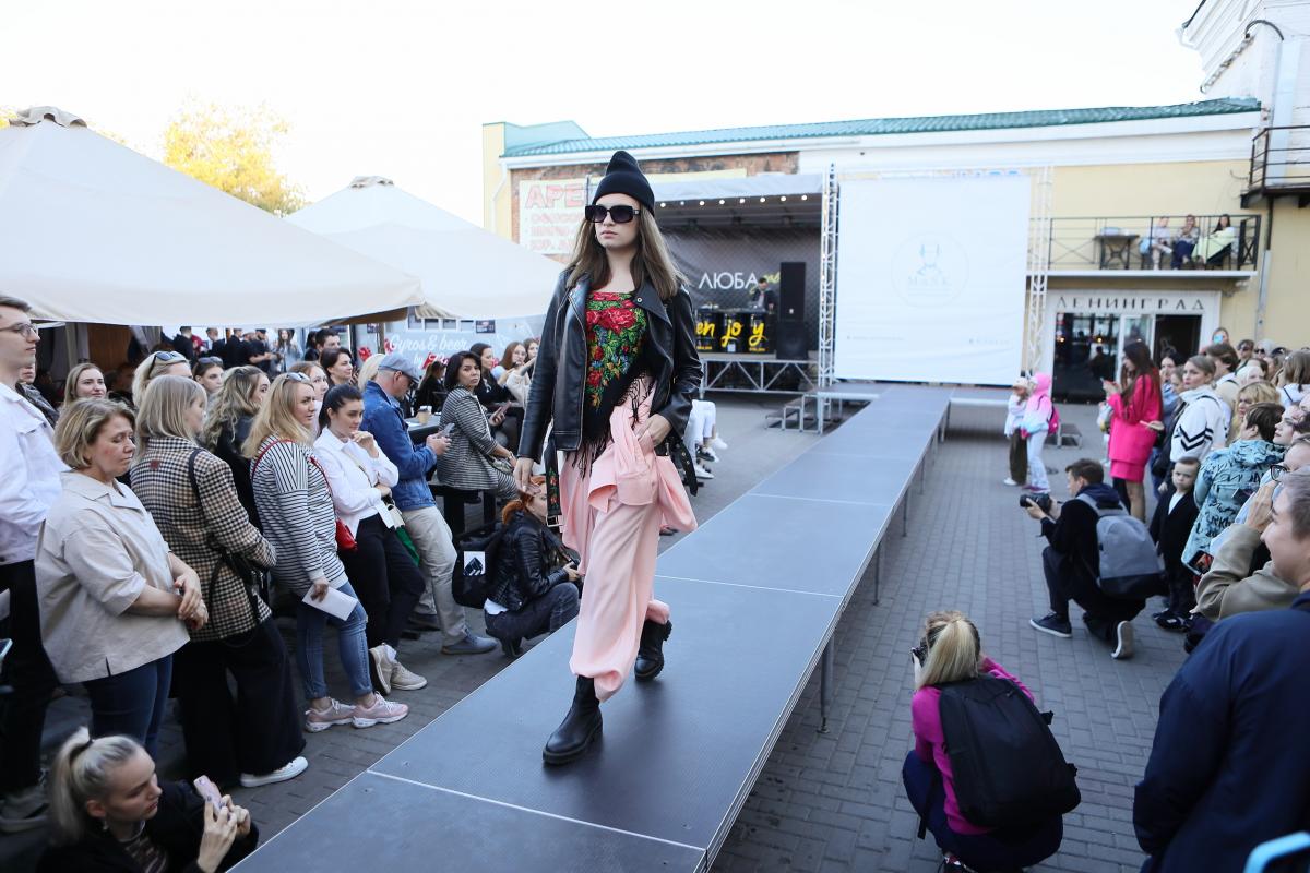 Открывала показ коллекция «Павлопосадские зарисовки» дизайнера Татьяны Ивановой и стилиста Алёны Стадник. Много красного, деним, этностиль и, конечно, элементы платков в коллекции — получилось довольно ярко и смело. Второй была коллекция марки GRANAT — много экокожи, кепки и свободные пиджаки. Далее следовала коллекция российской марки BONA FIDE. Она выпускает спортивную одежду, в том числе push-up лосины. Цвета от сдержанных чёрных и серых до очень ярких. Четвёртым был выход марки KUPCHIHA SHOP. Внимание в нём привлекали забавные шляпки, классические тренчи а также экстравагантное сочетание зелёного с розовым. Следующий выход — SAINT SAMPLE — комфортная оверсайз-одежда в приглушённых оттенках.