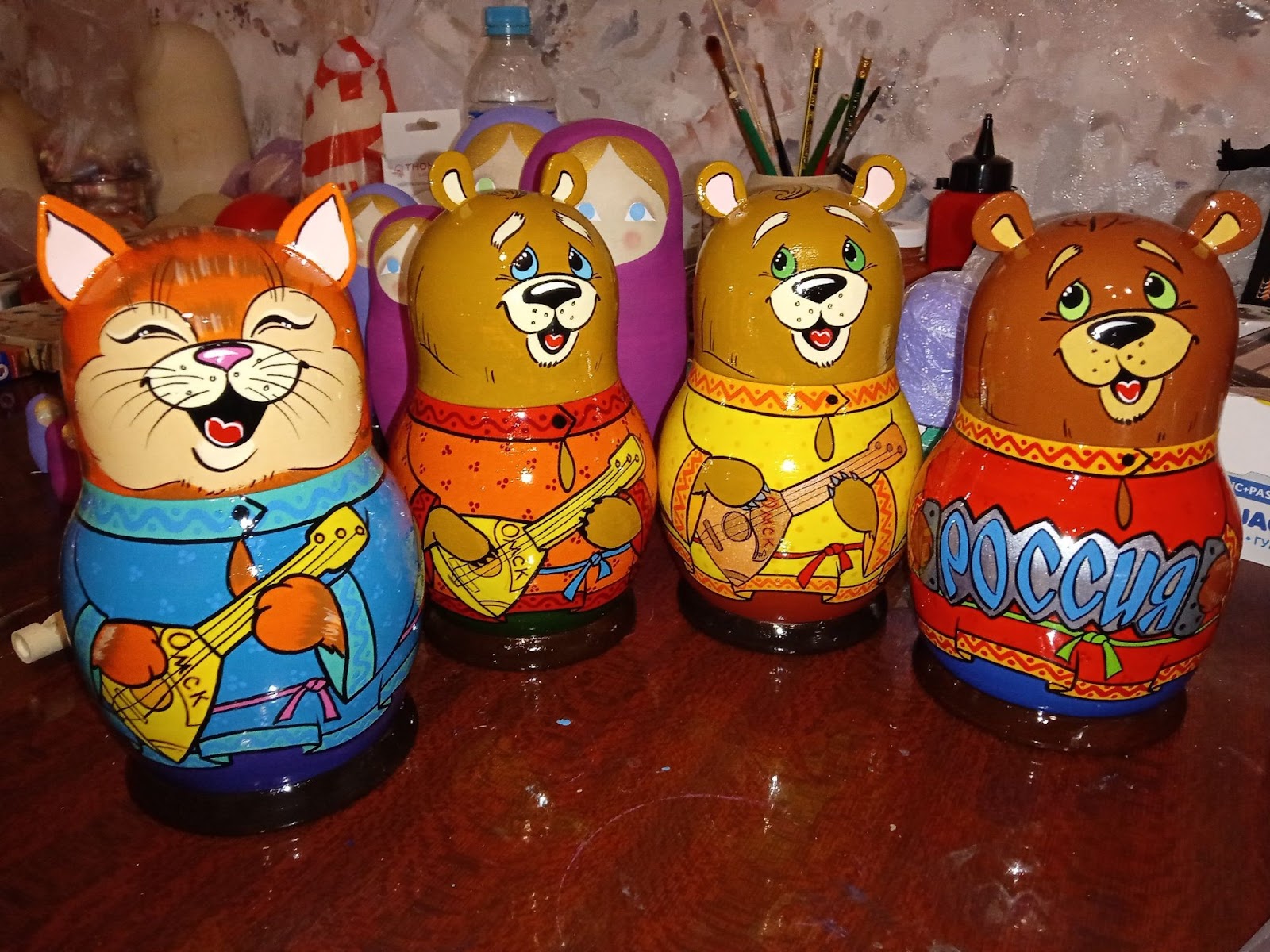 «Сейчас на реставрации комплект из 27 матрёшек с видами Омска. Ждут своей очереди матрёшки по мотивам русских народных сказок. Приехали заготовки — неваляшки из серии “Омская полечка”».