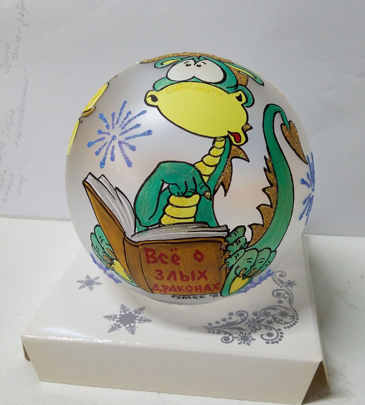 Особое место среди работ мастерицы занимает роспись стеклянных шаров. Всё началось со знакомства со знаменитым стеклодувом из Омска Юрием Чеглаковым. Валентина начала украшать своей росписью новогодние игрушки.