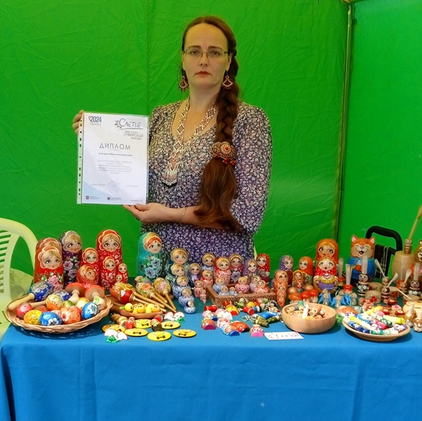 Свою первую матрёшку мастерица расписала в 1993 году. С 1998 года начала активно принимать участие в городских, региональных, всероссийских конкурсах и выставках.