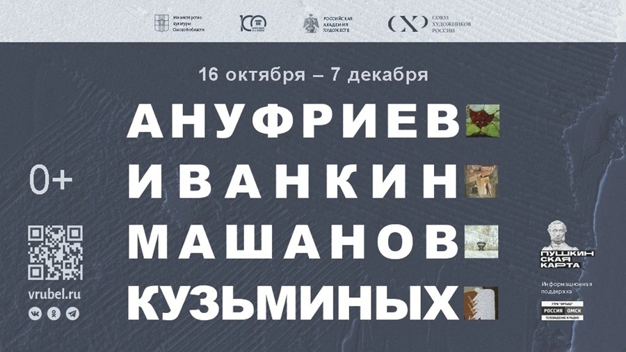 В Омском музее имени Врубеля открывается необычная выставка – «Ануфриев. Иванкин. Машанов. Кузьминых». За этими фамилиями – целая эпоха в постсоветском искусстве, история крепкой дружбы и творческого союза четырёх художников, каждый из которых оставил яркий след в культуре Сибири и Дальнего Востока. Экспозиция, задуманная как дань памяти безвременно ушедшему Сергею Ануфриеву, объединила работы мастеров, чьи пути пересеклись в Академии художеств и Союзе художников России. Получилась не просто выставка, а настоящее путешествие в мир образов, символов и духовных поисков, где архаика переплетается с христианством, а абстракция – с реализмом. Здесь можно увидеть срез искусства западной Сибири и Дальнего Востока, представленный работами талантливых художников и руководителей региональных отделений Союза художников России.