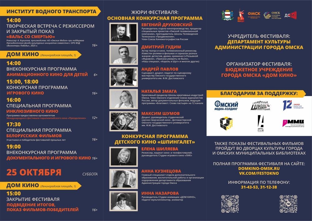 Подробную информацию о программе фестиваля можно найти на карточках и на официальном сайте «ДОМа КИНО» по ссылке: domkino-omsk.ru/festokno#newsokno