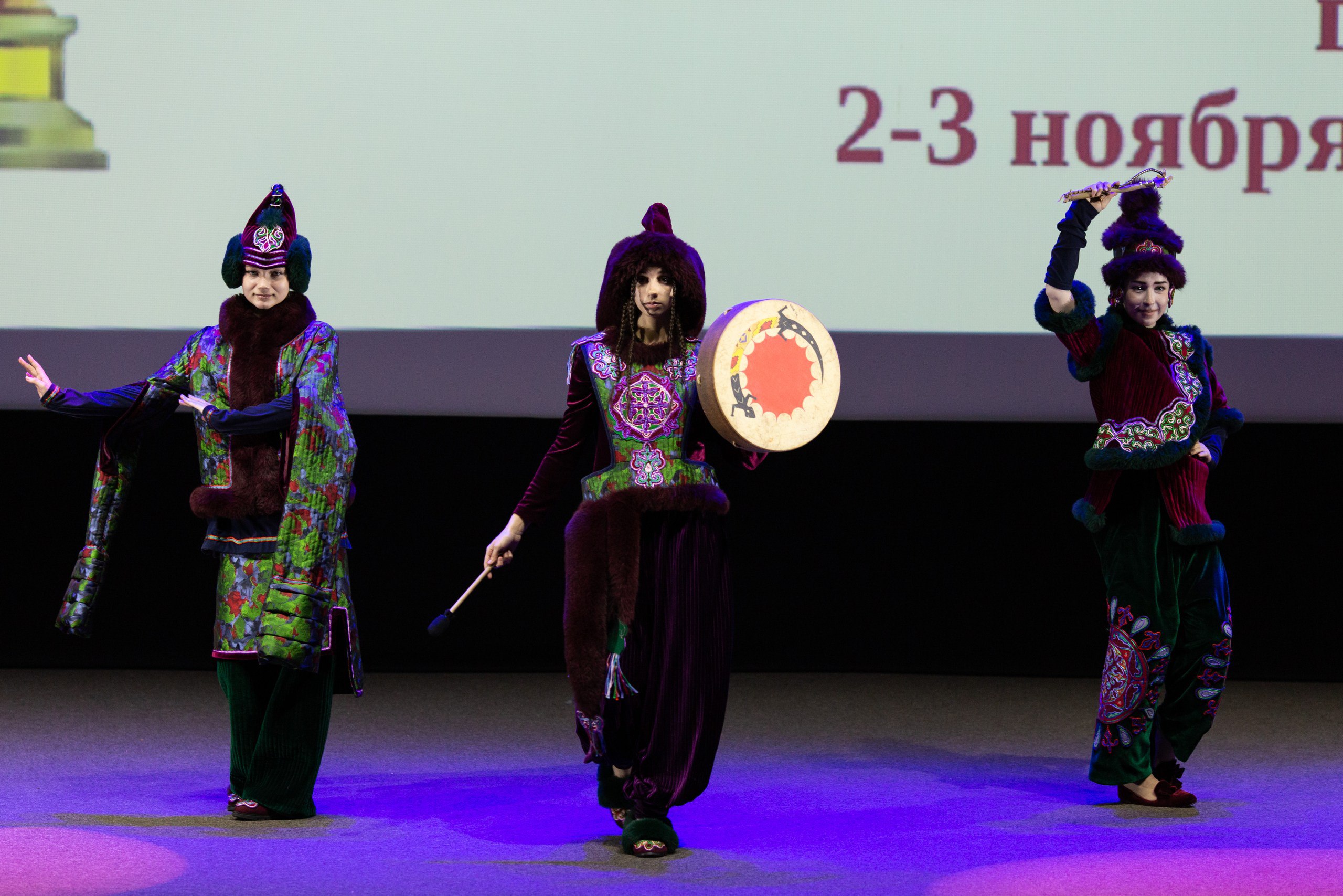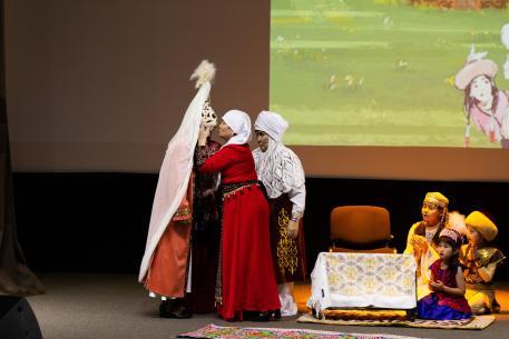 Гостей приветствовали первый замминистра культуры Омской области Ольга Безродная, автор Евразийского конкурса высокой моды национального костюма «Этно-Эрато», председатель Координационного совета «Форум женщин Евразии» Раушан Канапьянова и омский координатор проекта Торгын Ашенова.