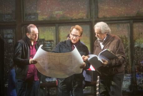 Недавно в театре состоялась премьера спектакля по мотивам произведений Бертольда Брехта. Свой спектакль Никита Михалков назвал «Перед рассветом», обозначив важную тему: тёмные силы сгущаются в сумерках, но за темнотой обязательно последует рассвет, как преодоление страха и отчаяния, обретение нового мира и надежд. Действие спектакля происходит во времена Третьего Рейха в нацистской Германии. Это первая постановка на сцене театра после грандиозного ремонта.