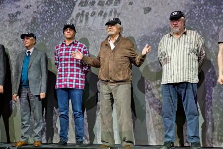 «Спектакль – это взаимоотношения сцены со зрительным залом. Мы проживаем три-четыре часа на сцене, и эта жизнь начинает совпадать с жизнью зала. Поэтому и слоган спектакля: "Про всех и для каждого". Я очень хотел сыграть "12" в Омске – люблю ваш город, у меня здесь друзья — и я не ошибся: мы совпали со зрителем», — сказал Никита Михалков.