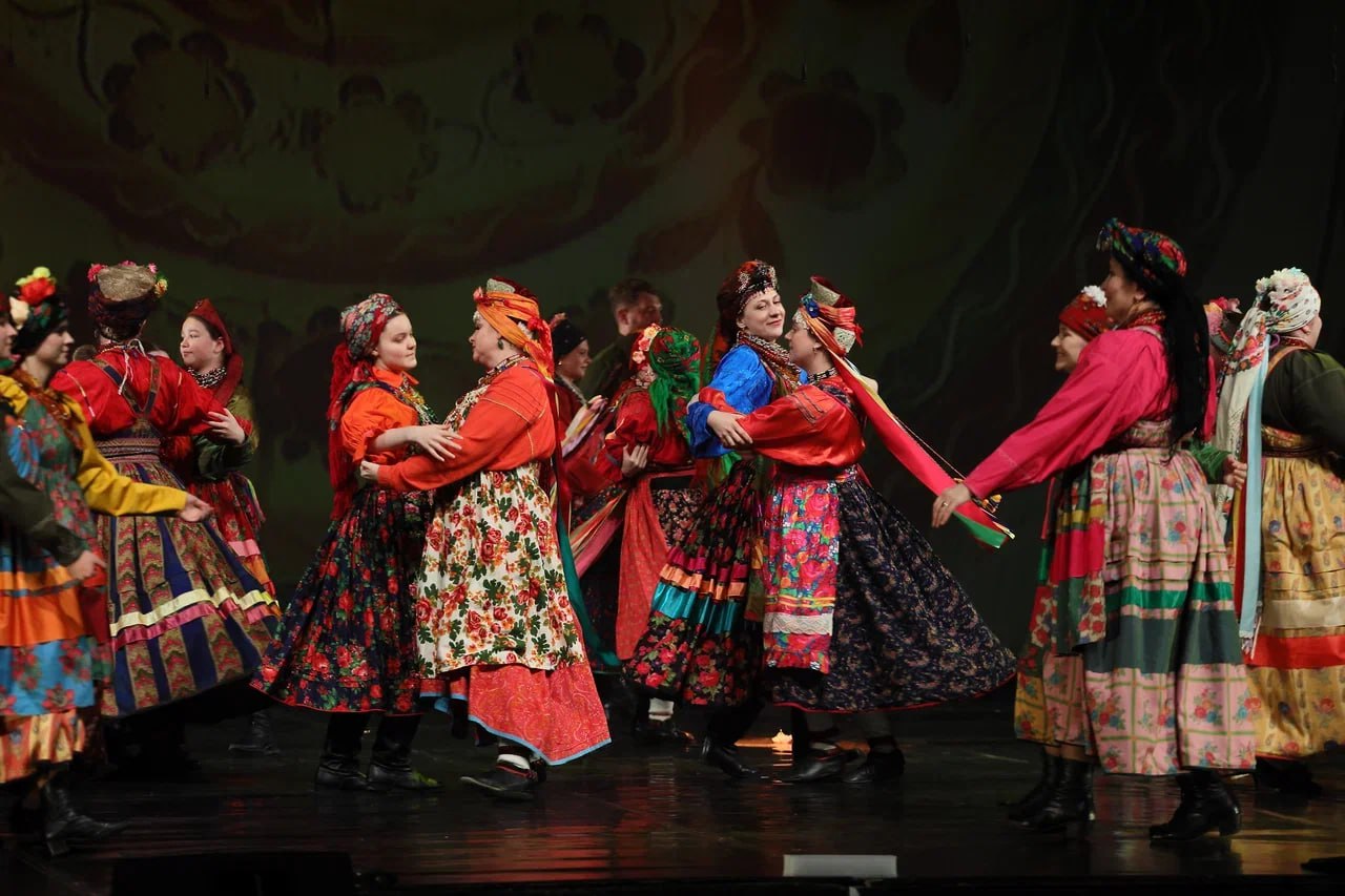 Плясовые и песни с весёлым мотивом сопровождались танцами. Полька-бабочка, хороводы, ручейки мелькали яркими красками народных костюмов трёх сибирских традиций.