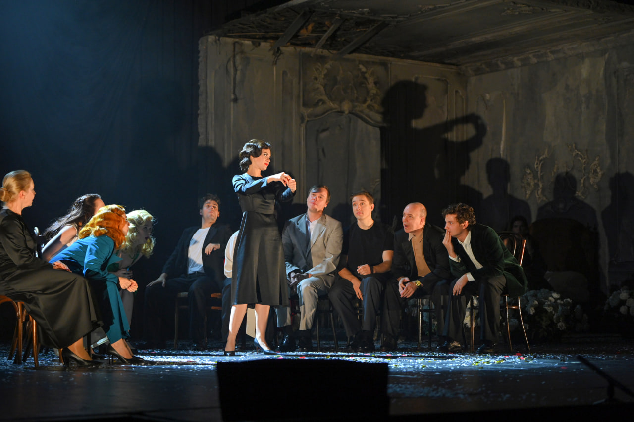 Зритель смотрит и, кажется, готов согласиться с тем, что ему показали. Показывает, кстати, в основном молодой состав труппы: из возрастного состава задействованы только Владислав Пузырников (это, конечно, Каренин, и роль будто писалась под него) и Ирина Герасимова – графиня Лидия Ивановна, персонаж, которого не сразу вспомнишь. Анну сыграла Юлия Пошелюжная (отличная работа, красивая спина, на славу потрудились костюмеры, создавая и платья, и бельё), а вот Ирина Бабаян, из которой тоже могла бы получиться прекрасная Каренина, во время пресс-показа сидела в зрительном зале. Что ж, кого-то надо было выбрать, и претензии по части каста здесь не возникают.