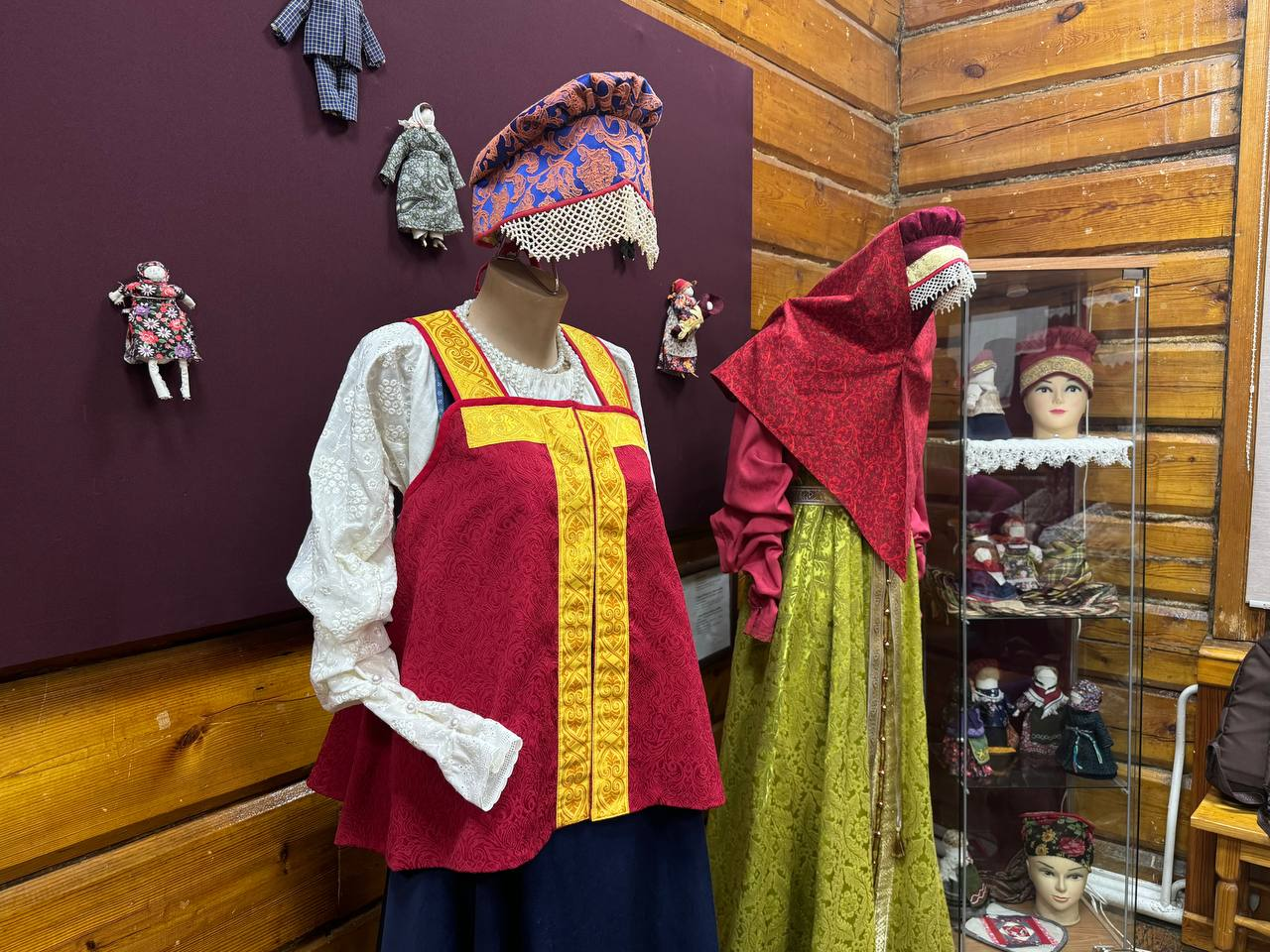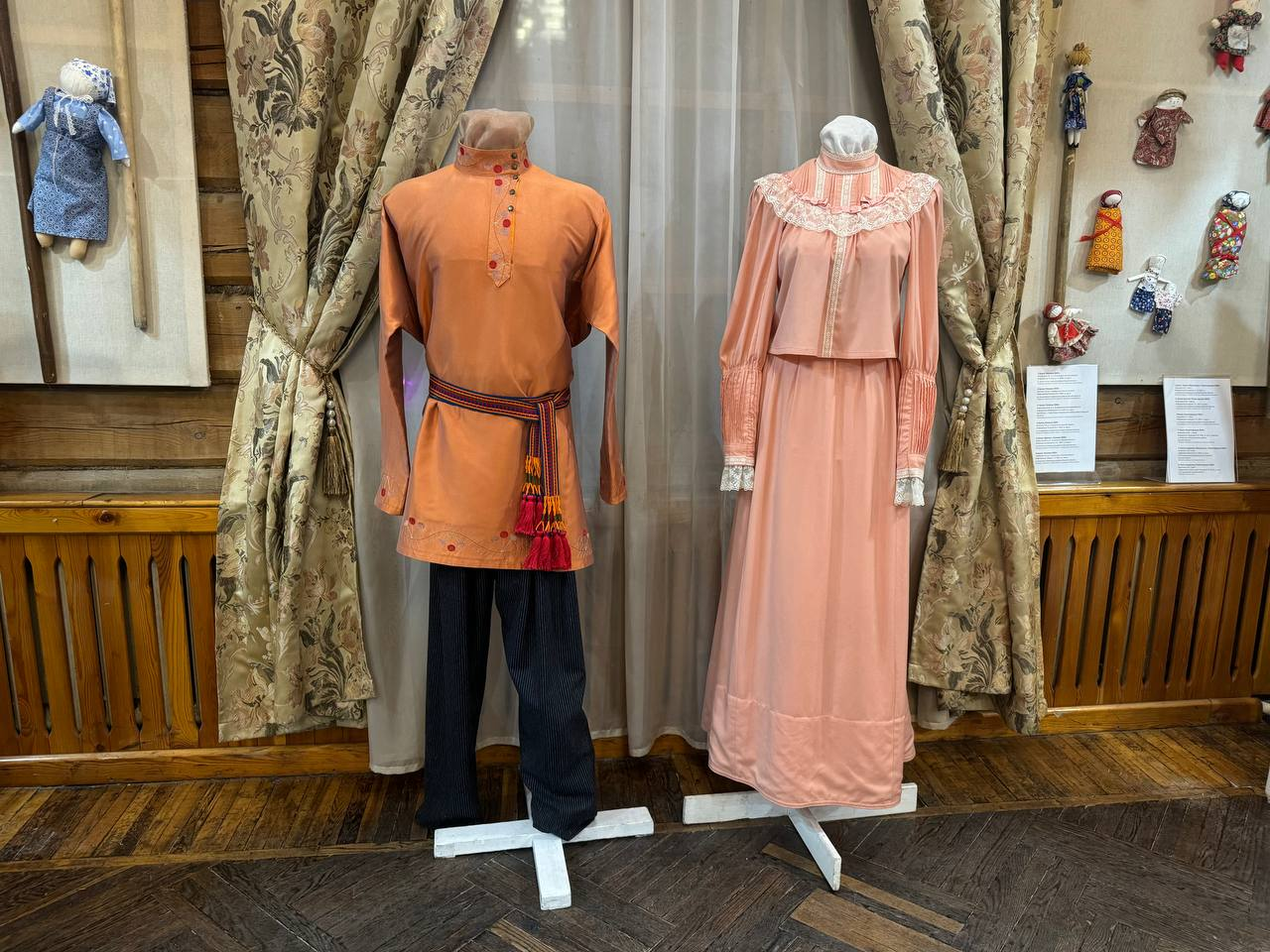 Вместе с верхней одеждой представлены сарафаны с рубахами и парочки (прим. пара или парочка – женский костюм, состоявший из двух предметов одежды, сшитых из ткани одного цвета) – «городская» и «крестьянская» версия одного покроя. Городская пара обычно ярче, с более нарядными тканями и деталями, крестьянская же сдержаннее, со скромными элементами.