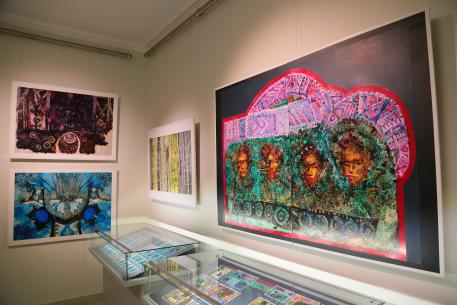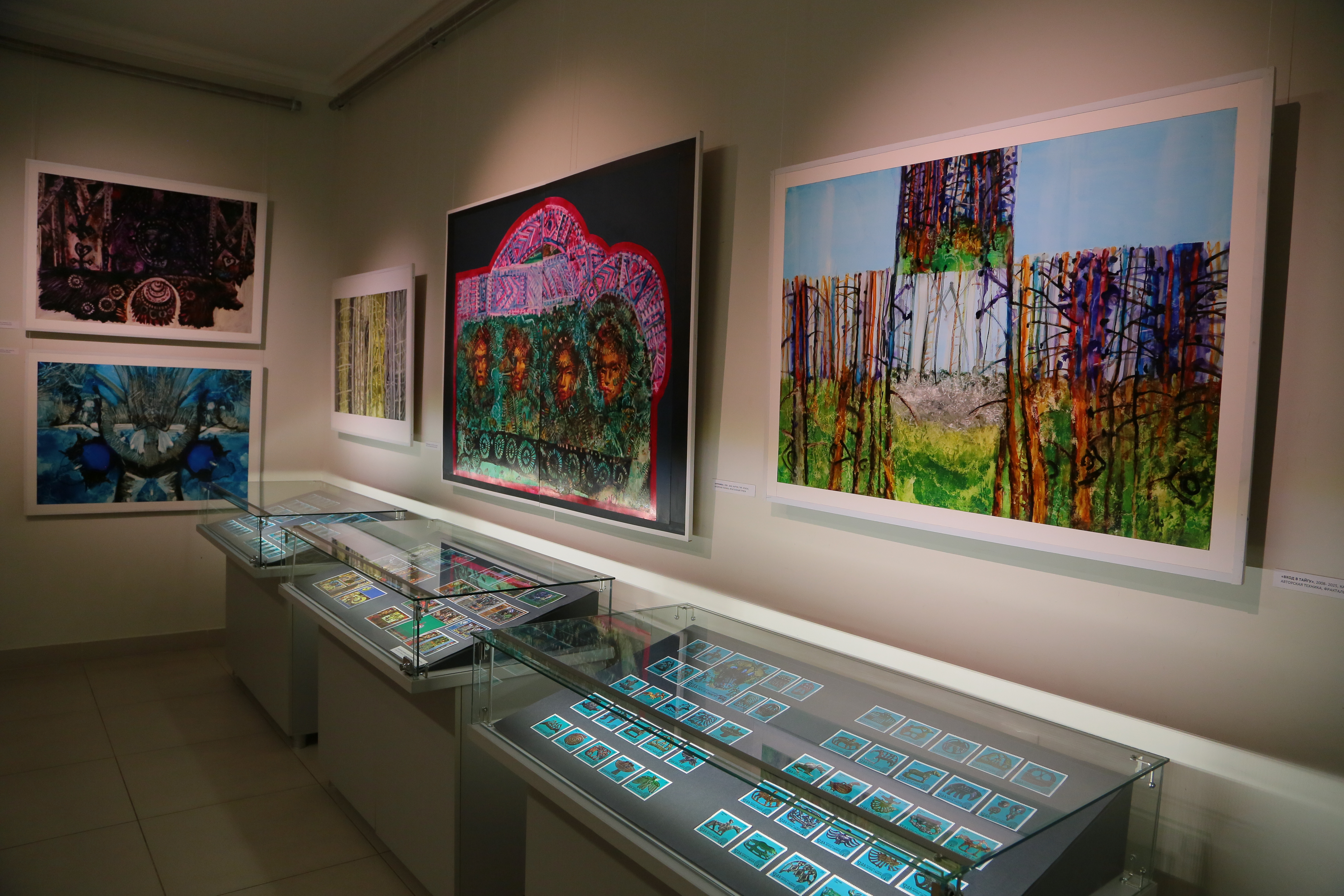 В экспозицию вошли несколько авторских циклов, по которым хорошо видно, как менялся фрактальный подход художника: «Картины картин», «Принцессы Сибирского ханства», серии авторских марок, фотографии, коллажи и работы на тему мифов и сказочных героев.