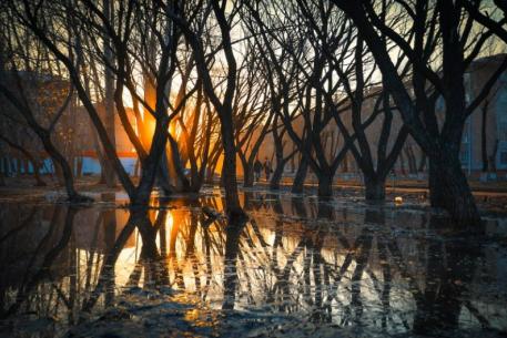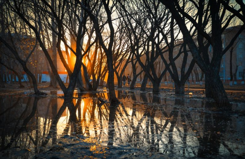 Ещё одна фишка фотографа – снимать капризы омской погоды: «Мне всегда это интересно, например, в начале октября ещё деревья зелёные, а снег уже выпал, он мокрый, всегда липкий, все деревья завешаны снегом. Я в такой момент бросаю все съёмки, бегу снимать город. С вечерним туманом то же самое – люблю нестандартные сюжеты, которые делают город более интересным, более необычным».