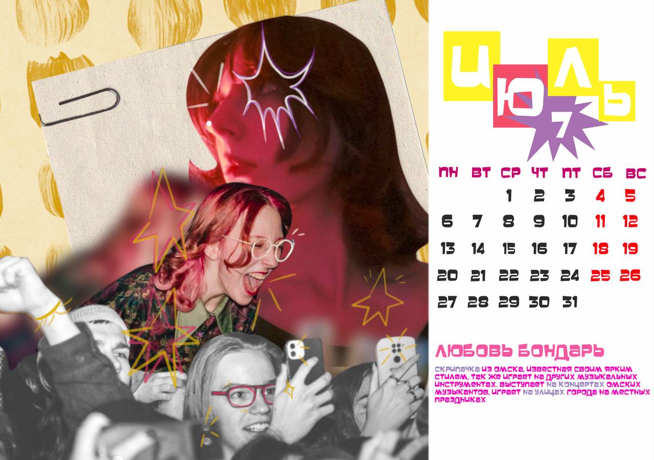 Героев для календаря я выбирала тоже быстро, брала тех, кто будто ближе всего, ведь каждый уникален по-своему. На самом деле все мы чем-то связаны друг с другом, я так считаю. А люди из моей работы делают наш город Омск в разы лучше своим искусством.