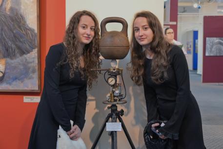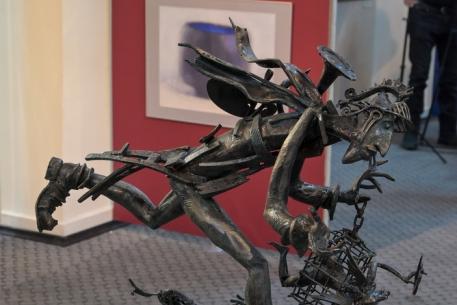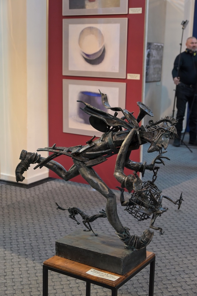 Традиционно в выставке принимают участие отец и сын Капраловы. Являясь скульптором по металлу, Александр Николаевич представил на суд коллег и зрителей несколько новых произведений, легко узнаваемых по творческому почерку художника, — «Шаман», «Бедуин», «Художники, у вас украли музу».