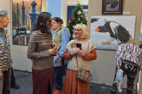 В Омске в 21-й раз открылась выставка-конкурс среди профессиональных омских художников «Лучшее произведение искусства 2025 года». В этом году участие в ней приняли более семидесяти авторов, которые представили свои лучшие работы, созданные в течение минувшего года — от миниатюрного снеговика на кончике волоса и монументальных образов Достоевского и Менделеева, до ностальгических «Казаков-разбойников» и военно-патриотического полотна «Никогда не воюйте с русскими». Лучшие работы будут отмечены в номинациях «Живопись», «Графика», «Декоративно-прикладное и народное искусство», «Скульптура и монументальное искусство», «Искусствоведение и художественная критика» и «Кураторский проект».