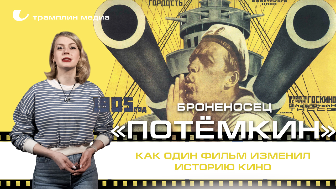 Всем привет! Ты прекрасно знаешь, что кино — самое молодое из искусств. И 21 декабря оно отметило один из своих самых весомых юбилеев. Фильму «Броненосец „Потёмкин“» режиссёра Сергея Эйзенштейна исполнилось 100 лет — именно тогда состоялся первый закрытый показ картины. И это действительно важная дата – лента изменила ход мирового кинематографа, навсегда вписав имя советского режиссёра во все учебники по киноискусству мира. А мы — рубрика «ПРОкино» на медиа «Трамплин» и её ведущая Суровая Евгения — расскажем тебе, как снимался один из главных фильмов всех времён и народов. Поехали!