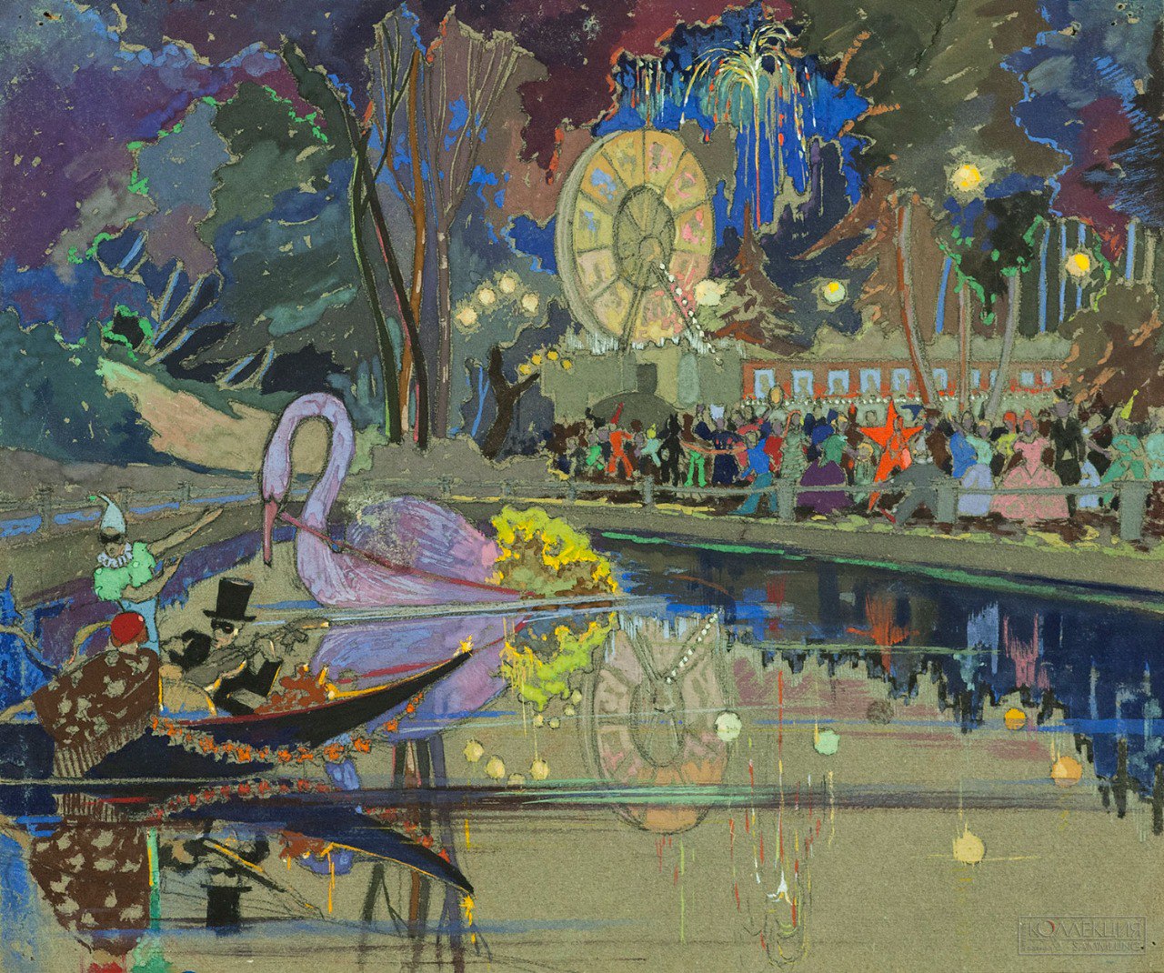 Омичи предоставят для экспозиции два ценных экспоната. Первый – картина Николая Мамонтова «Ночное кафе» («Маскарад»), написанная в 1919 году. Художник запечатлел волшебную маскарадную ночь, полную веселья и загадок, где в свете фонарей танцуют и общаются нарядно одетые участники праздника.