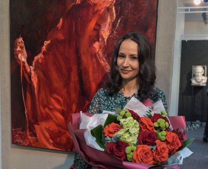 — Мне хотелось показать человека, который, с одной стороны, оплакивает случившееся, а с другой — принимает ситуацию и живёт дальше. Я искала это движение в позе, в раскрытии рук, и так получилось, что вдруг увидела в них нить. И я ввела эту нить в картину, хотя изначально её не задумывала, — поведала историю созданию полотна «Прерванная нить» её автор Елена Боброва. — Прерванная нить – это и символ прерванного родства, и забытой исторической памяти.