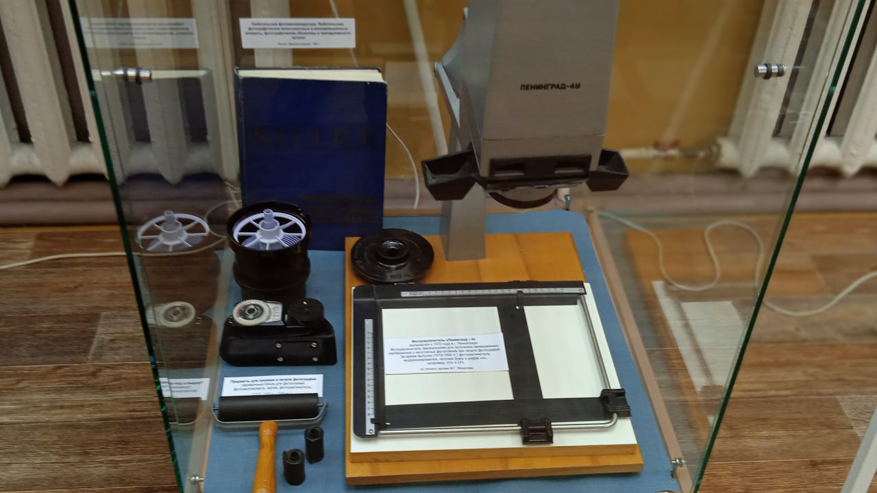 Фотовыставку дополняют витрины, в которых представлена фототехника доцифровой эпохи, при помощи которой профессиональные фотографы и фотолюбители занимались искусством светописи: аппараты «Смена», «ФЭД», «Зенит», увеличитель «Ленинград», бачок для проявки пленки, валик для глянцевания. Среди экспонатов можно увидеть фотоаппарат «Лейка», переданный в дар музею просвещения Александром Чепурко.