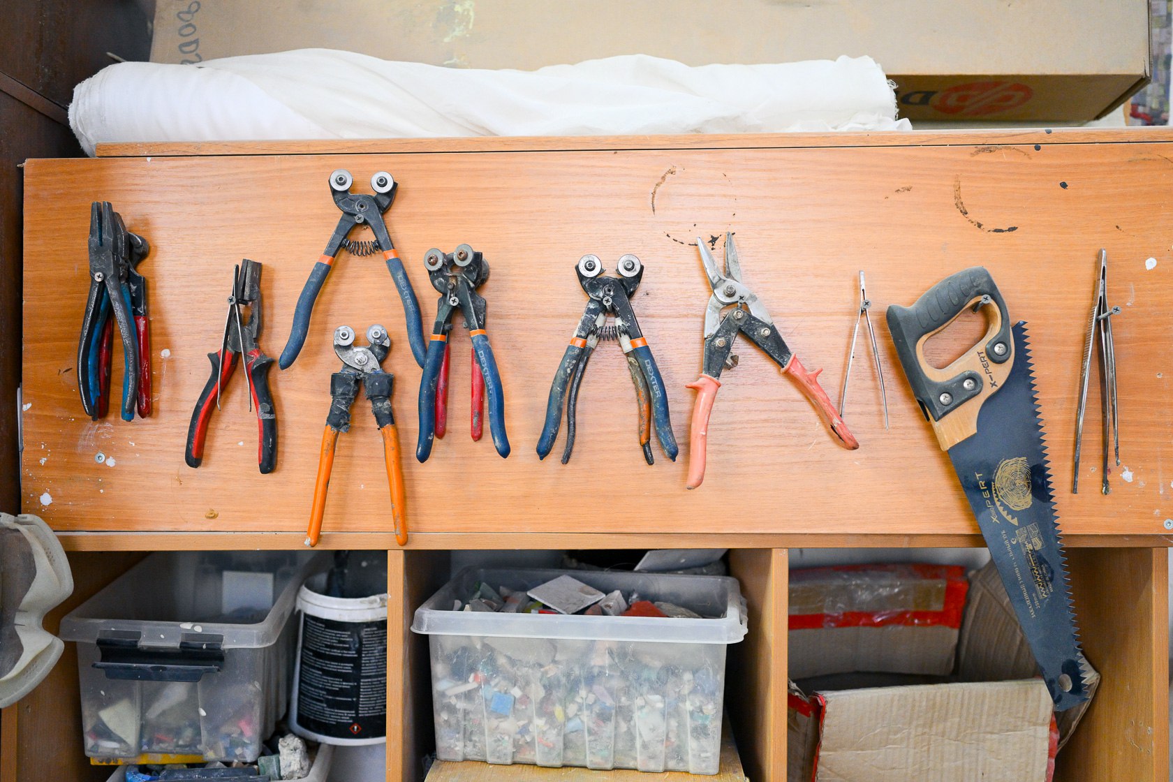 В мастерской везде и всюду – камень. Крупные булыжники, которые ещё ждут своей очереди на распил, мелкая галька, полудрагоценные камни – каждый может стать частью большой истории. Антон копается в бесчисленных коробках и ящиках, показывая нам всё новые и новые природные экспонаты: