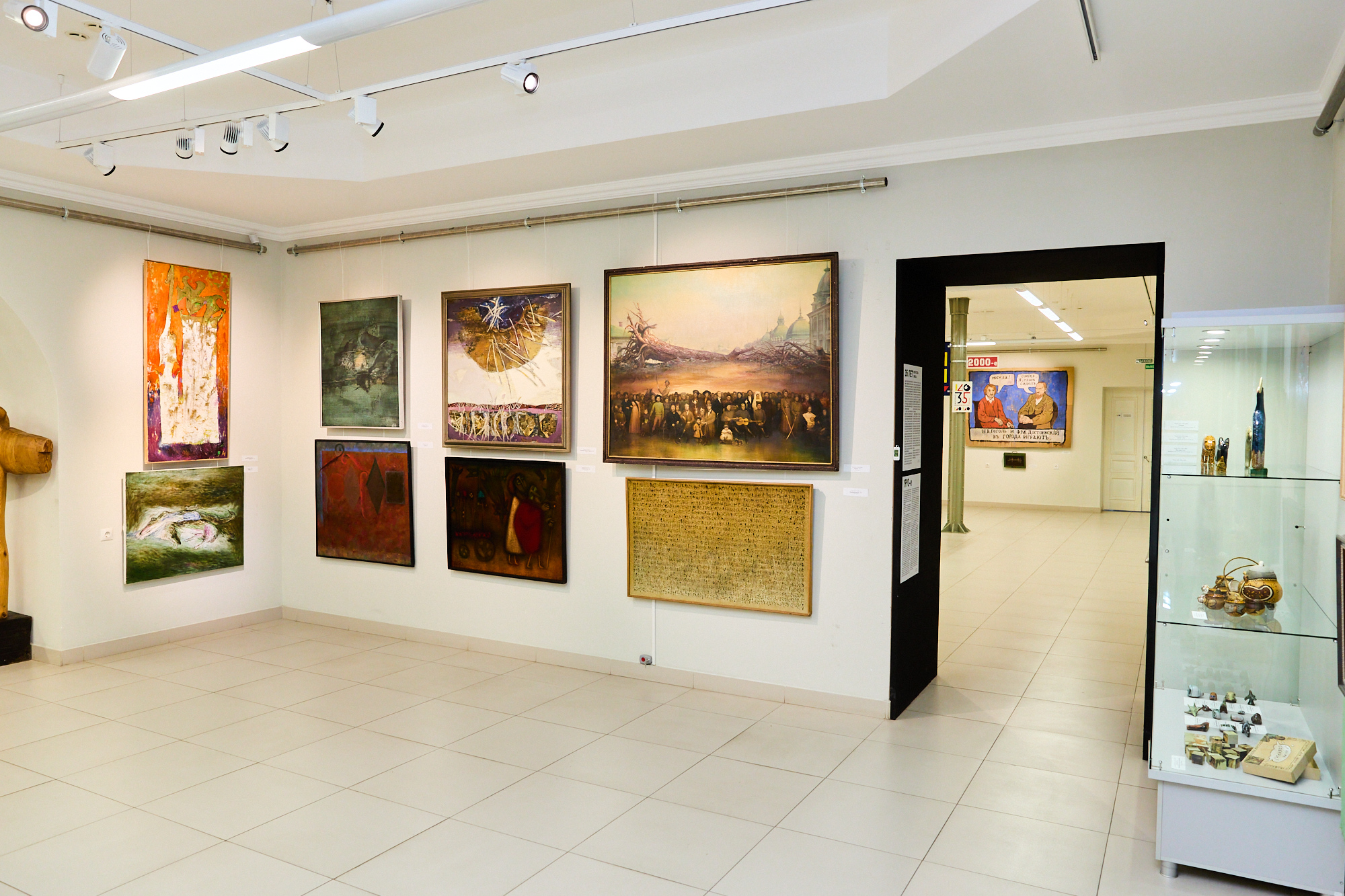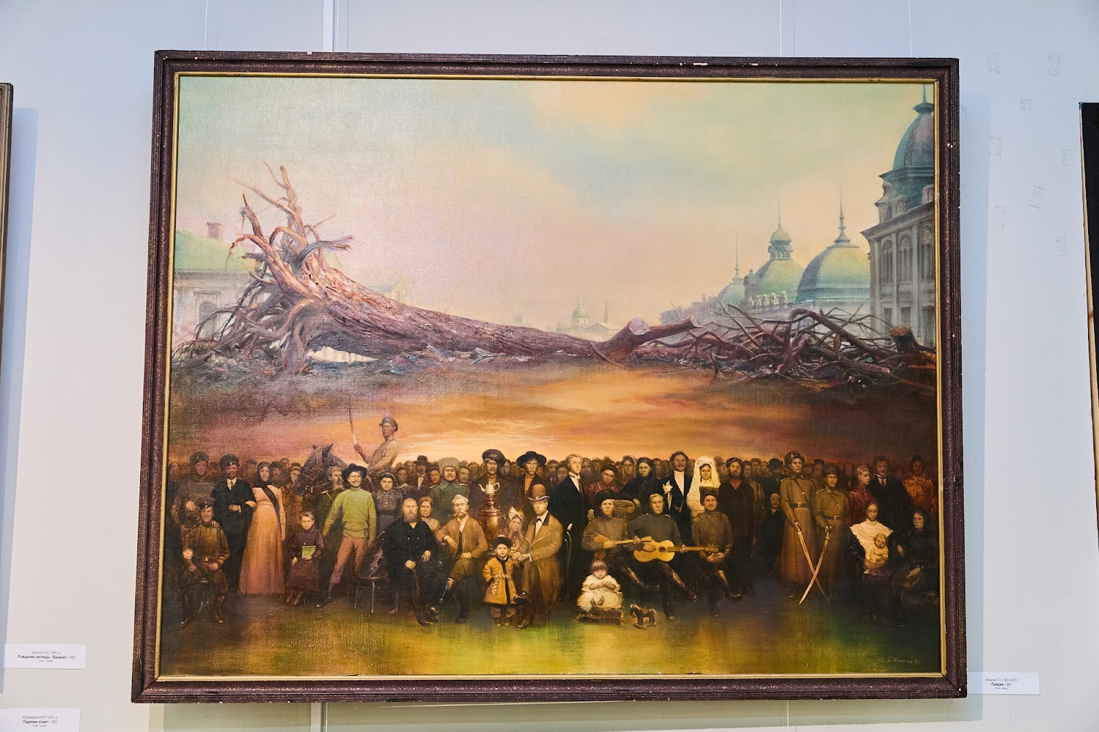 Экспозиция показывает, что реализовывать творческую свободу можно очень по-разному. Например, одно из главных украшений зала 90-х годов – картина Георгия Кичигина «Предки», на которой теснятся на фоне Любинского проспекта, ниже уровня древесных корней, казаки и горожане. Кто-то сидит у самовара, кто-то готовится сыграть на гитаре, есть пара новобрачных, друзья, скрестившие шашки, маленький ребёнок с деревянной лошадкой. Все смотрят на зрителя, все объединены (вопреки постулатам марксизма) пониманием своей суровой судьбы – она у людей, как известно, примерно одна.