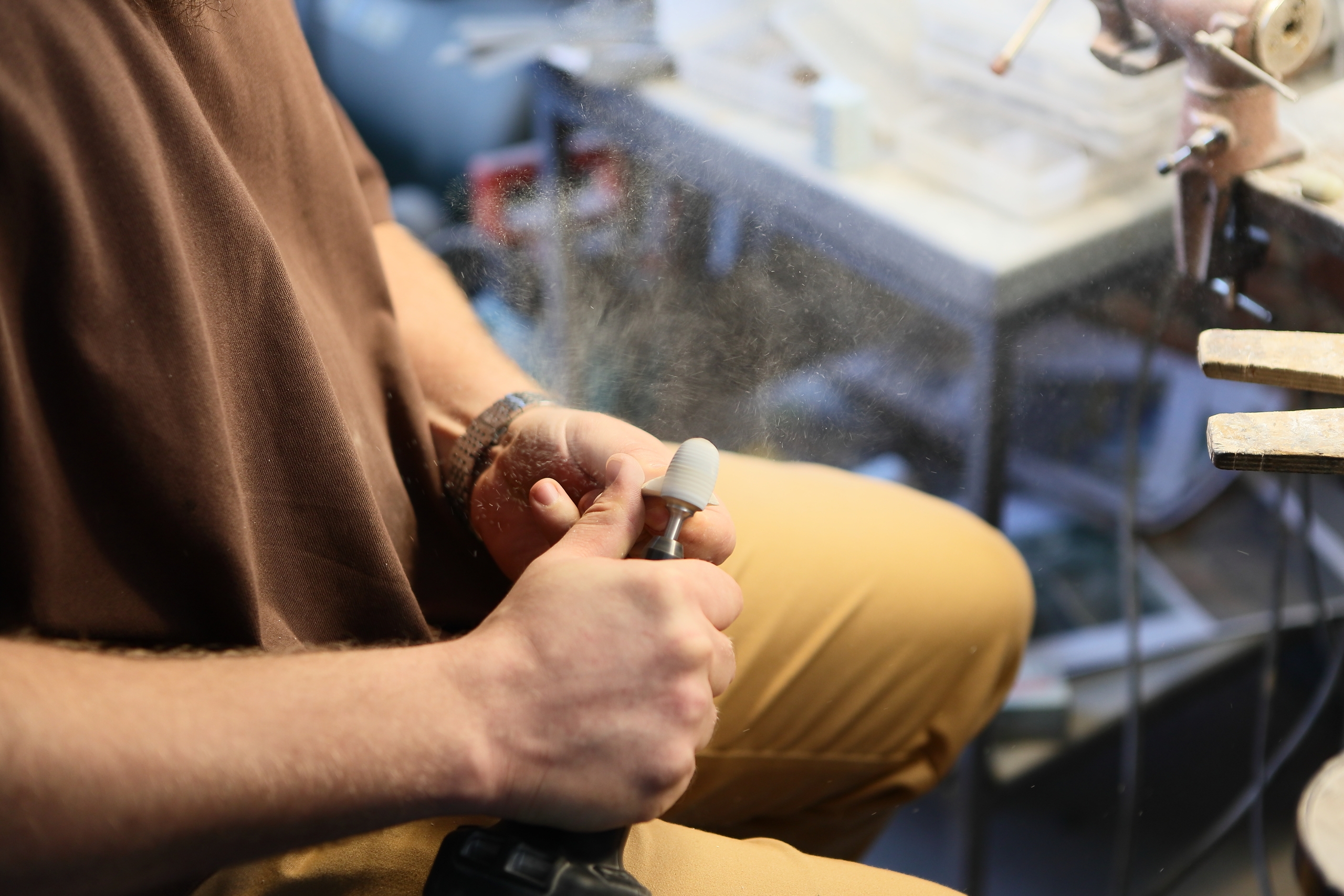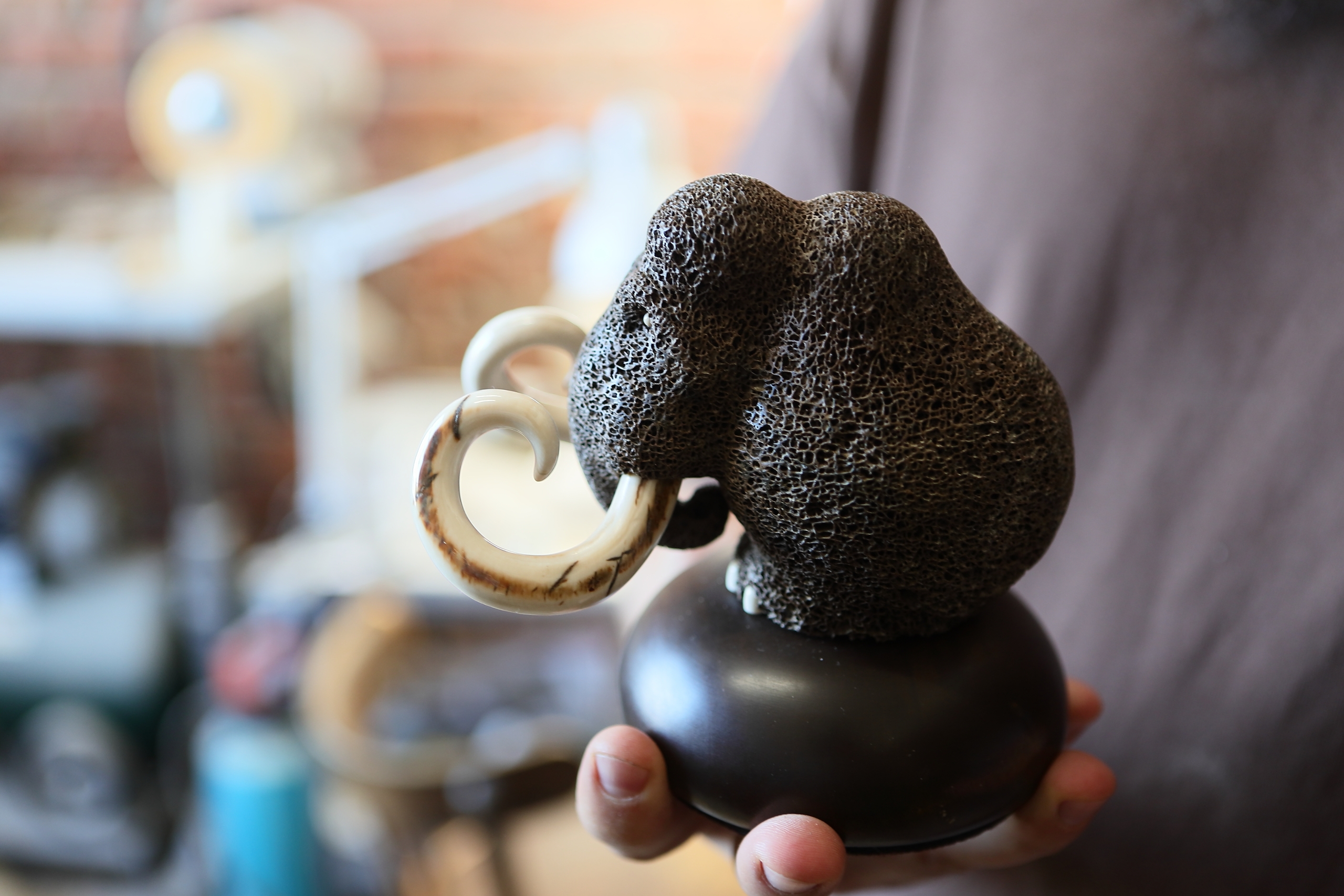 Одно из преимуществ его работы, говорит Михаил – не нужно бегать вокруг огромной статуи с болгаркой и другими инструментами. Он выбрал для себя мелкую скульптурную пластику, когда можно «поймать медитацию под жужжание бормашинки».