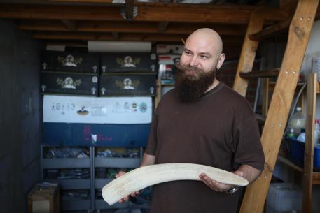 Бивень идеальной сохранности можно найти в регионах с вечной мерзлотой – в Якутии, например. Но Михаил признаётся – с идеальным материалом почти не работал, использует как местный материал, так и советские запасы.
