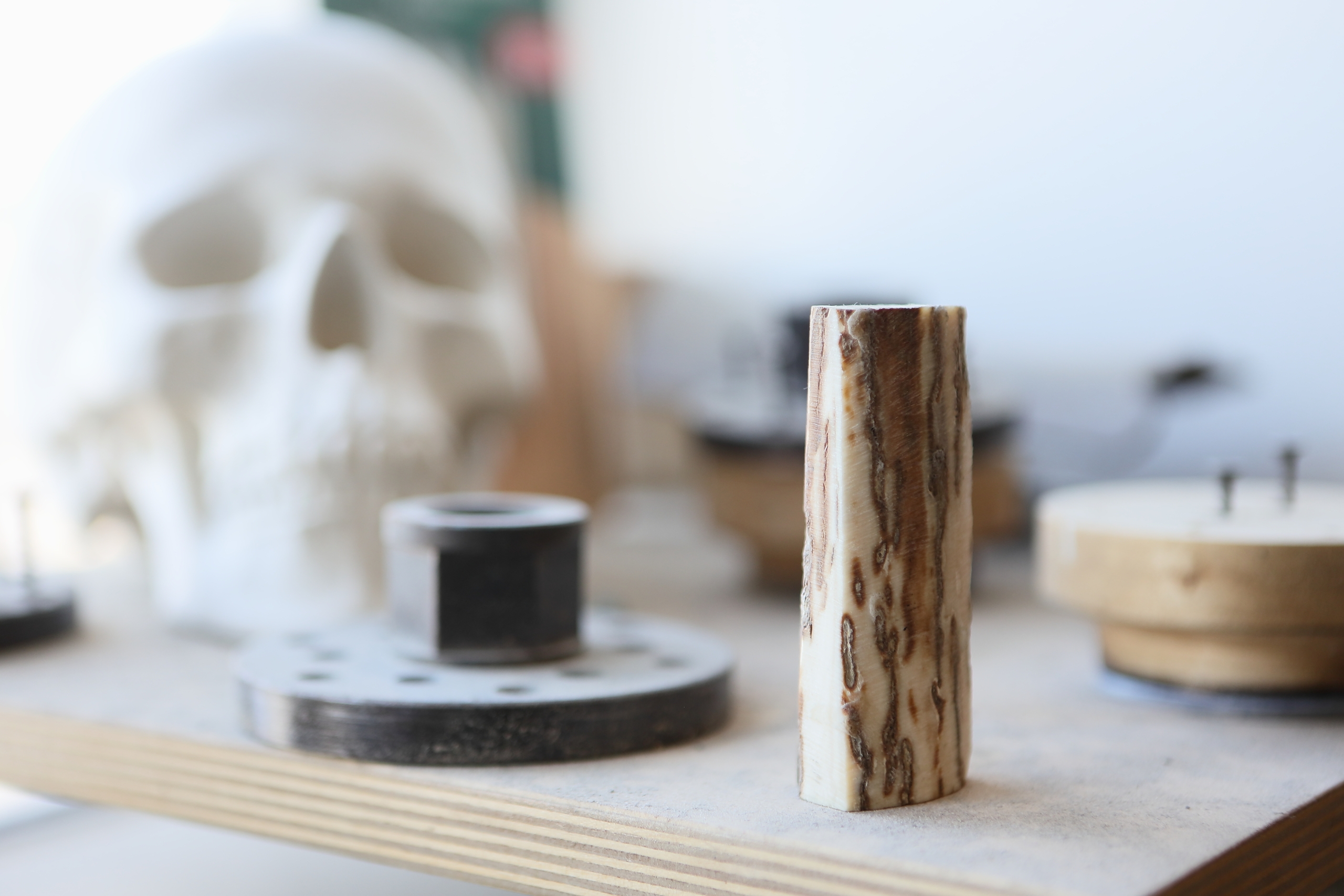 «Ещё одна история – однажды работал с лосиным рогом и когда начал погружаться в материал, у меня вылетает искра из-под фрезы. Значит, внутри металл – в роге оказался фрагмент дроби. Охотник в этот день промахнулся, и рог потом обрастил эту дробинку».