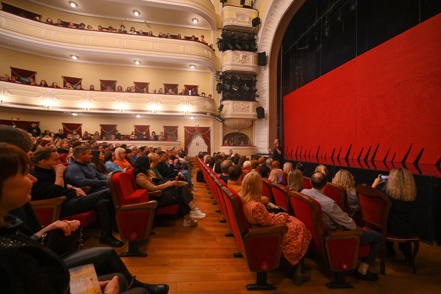 Пространством здесь становится не только сцена, но и весь зрительный зал. Привычного сюжета нет. Это калейдоскоп историй, где есть место чёрно-белому кино, графу Дракуле, даже личным воспоминаниям артистов. И всё это сливается в один мир, наполненный светом, шумом и запахами.