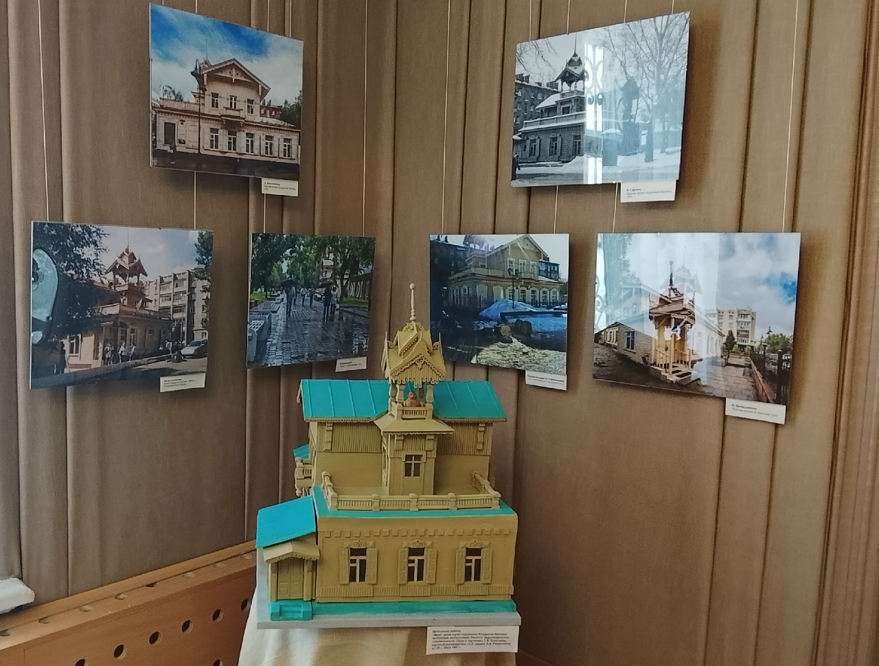 Целый зал занимает музейная фотолетопись. Здесь можно увидеть, как деревянный дом на Плотницкой улице становился музеем и вообще проследить его историю. Фотография под названием «Дружеские посиделки возле дома, датированная 1951 годом, запечатлела времена, когда этот дом занимали коммунальные квартиры. А на фото 1959 года видно, как за деревянным особняком строится пятиэтажка. А вот уже в 90-е годы на реставрации старинного здания трудятся волонтеры из клуба любителей старины под руководством Игоря Коновалова.