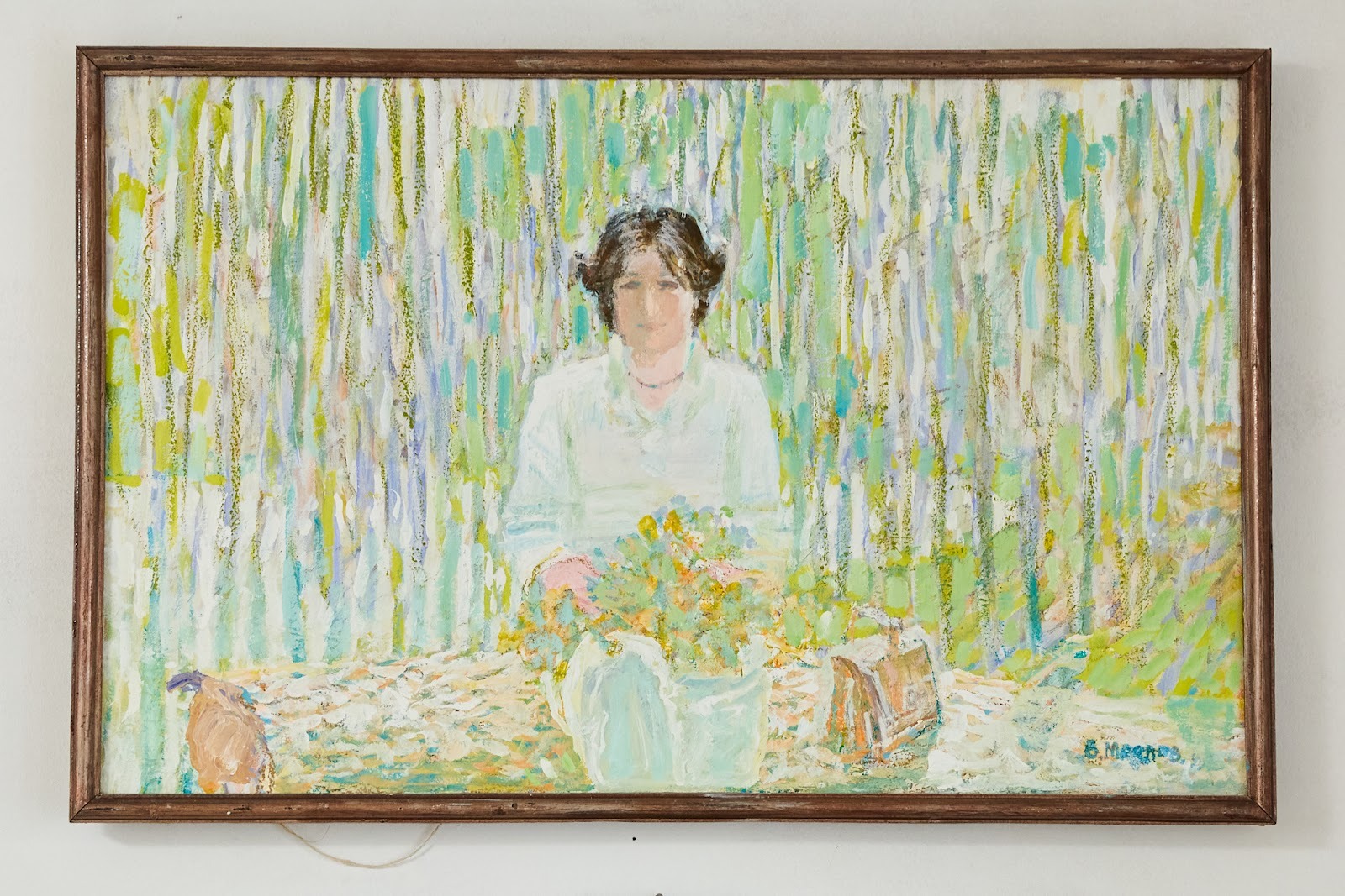 «Здесь она как фея, как будто здесь и как будто её нет. Вот этот момент для меня в последнее время особенно важен – момент мимолетности, ощущение двойственности, театральности. По академическим меркам тут все нарушено, тени темнее, светлее – сценарий для меня важнее. Это скорее витражное решение, у неё даже глаза слегка размыты – всё ради замысла».