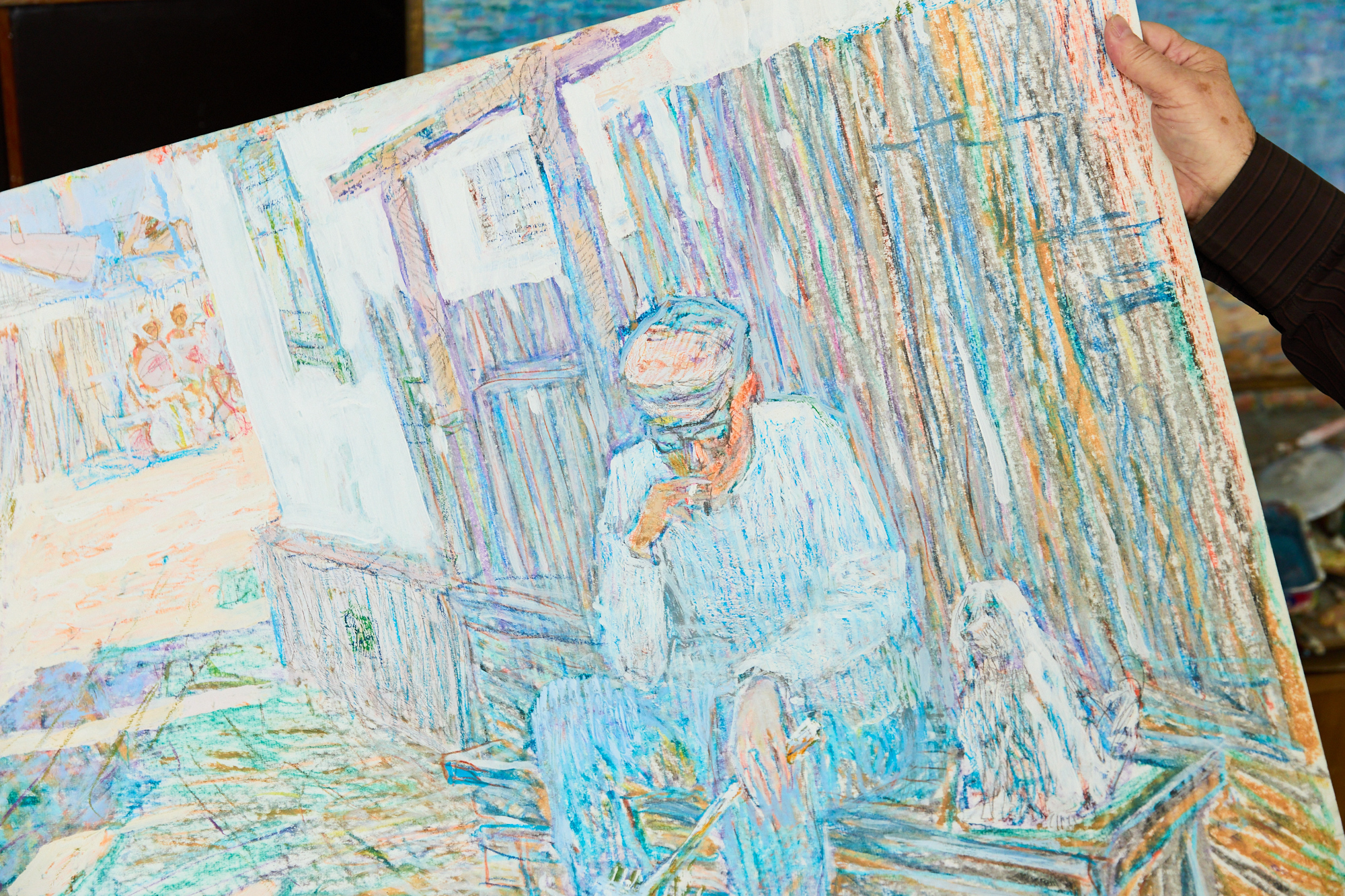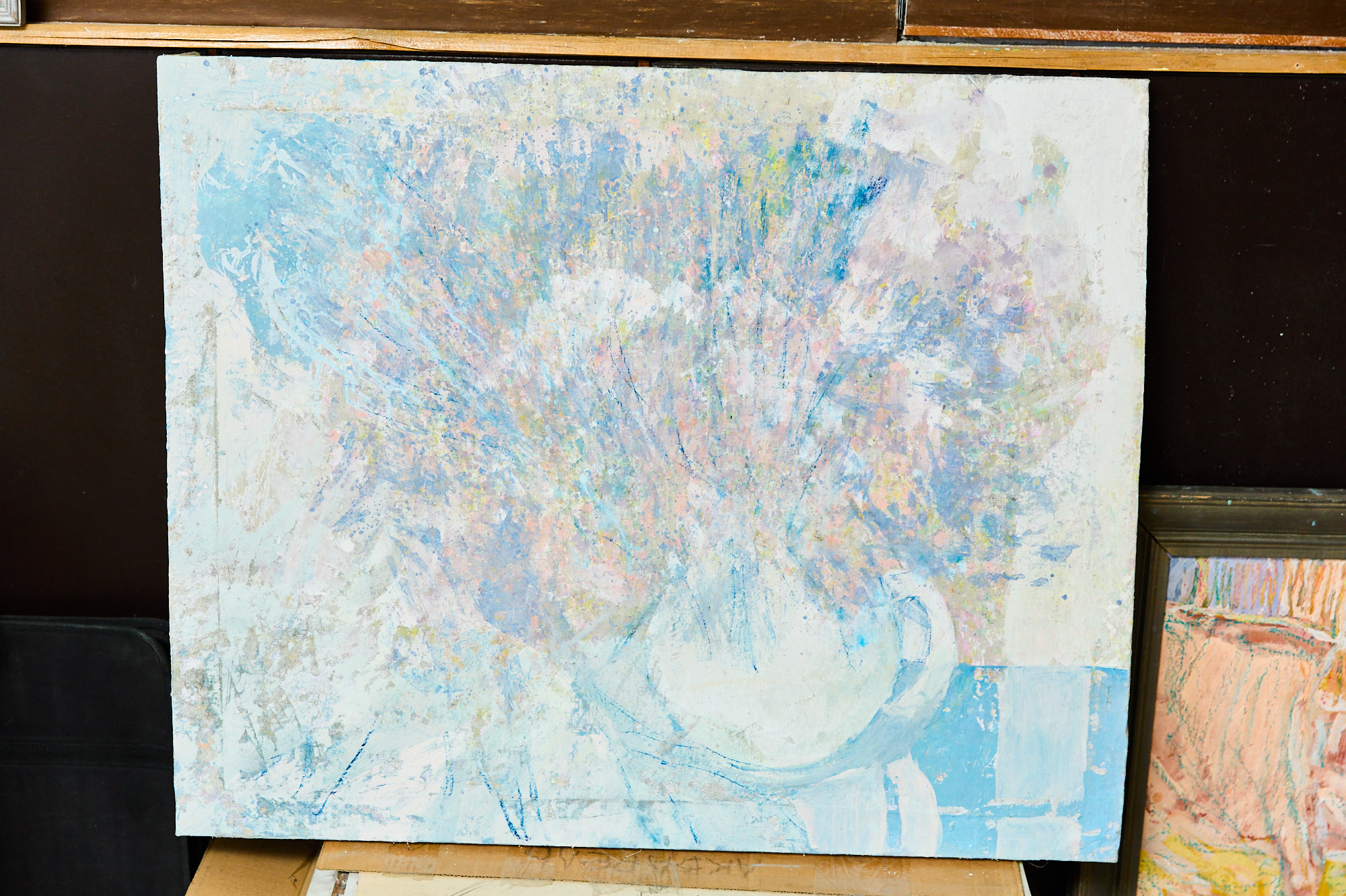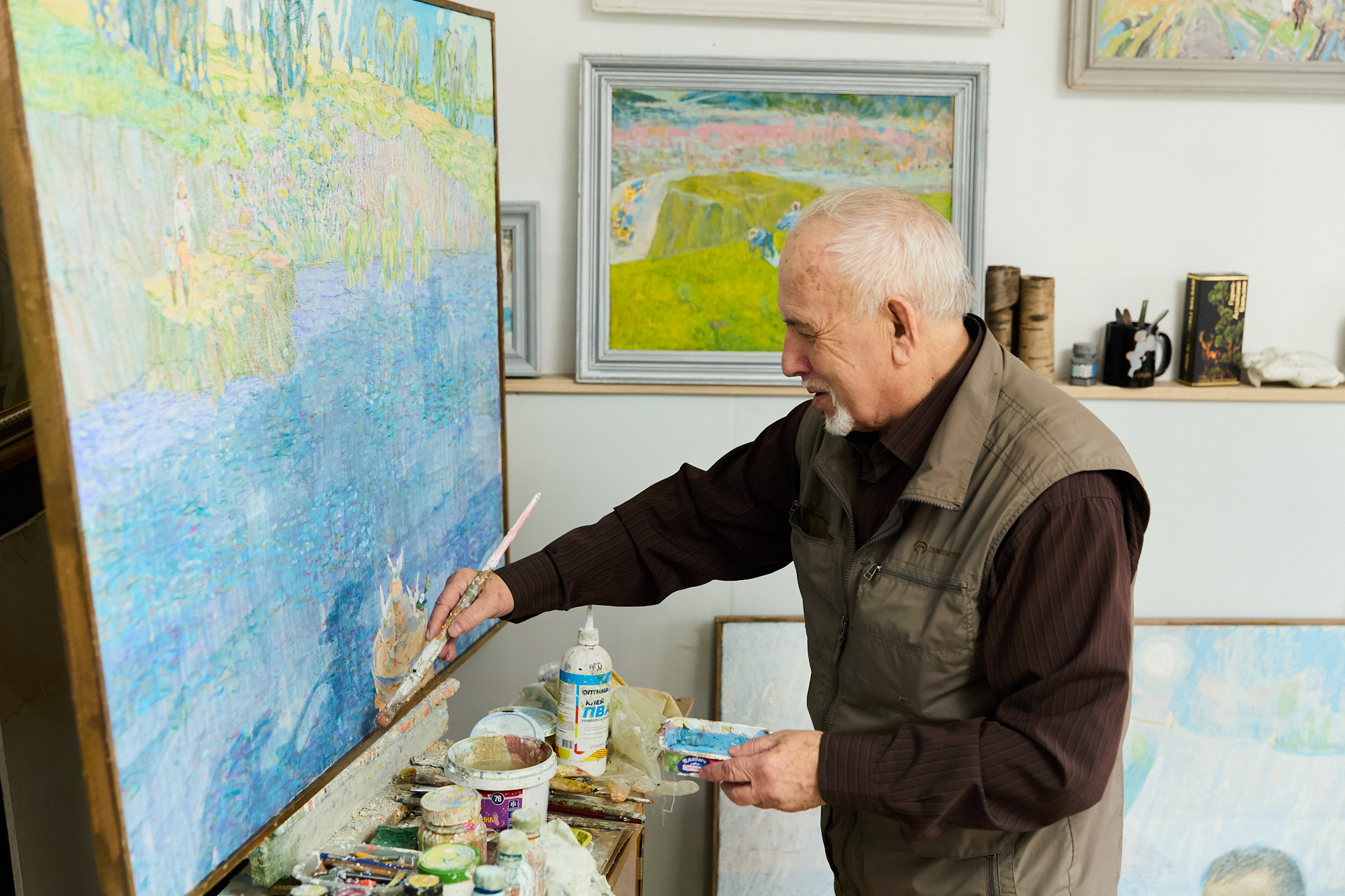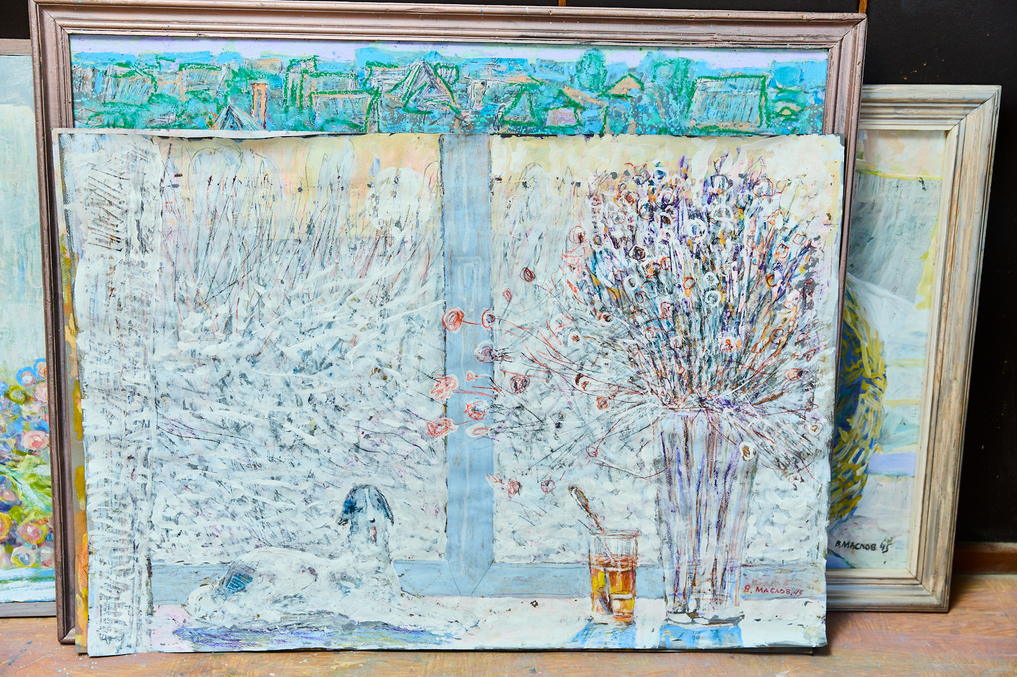 В каждой мастерской свой запах искусства. В маленьком кабинете живописца Виктора Маслова пахнет уайт-спиритом – растворителем, которым он удаляет излишки краски.