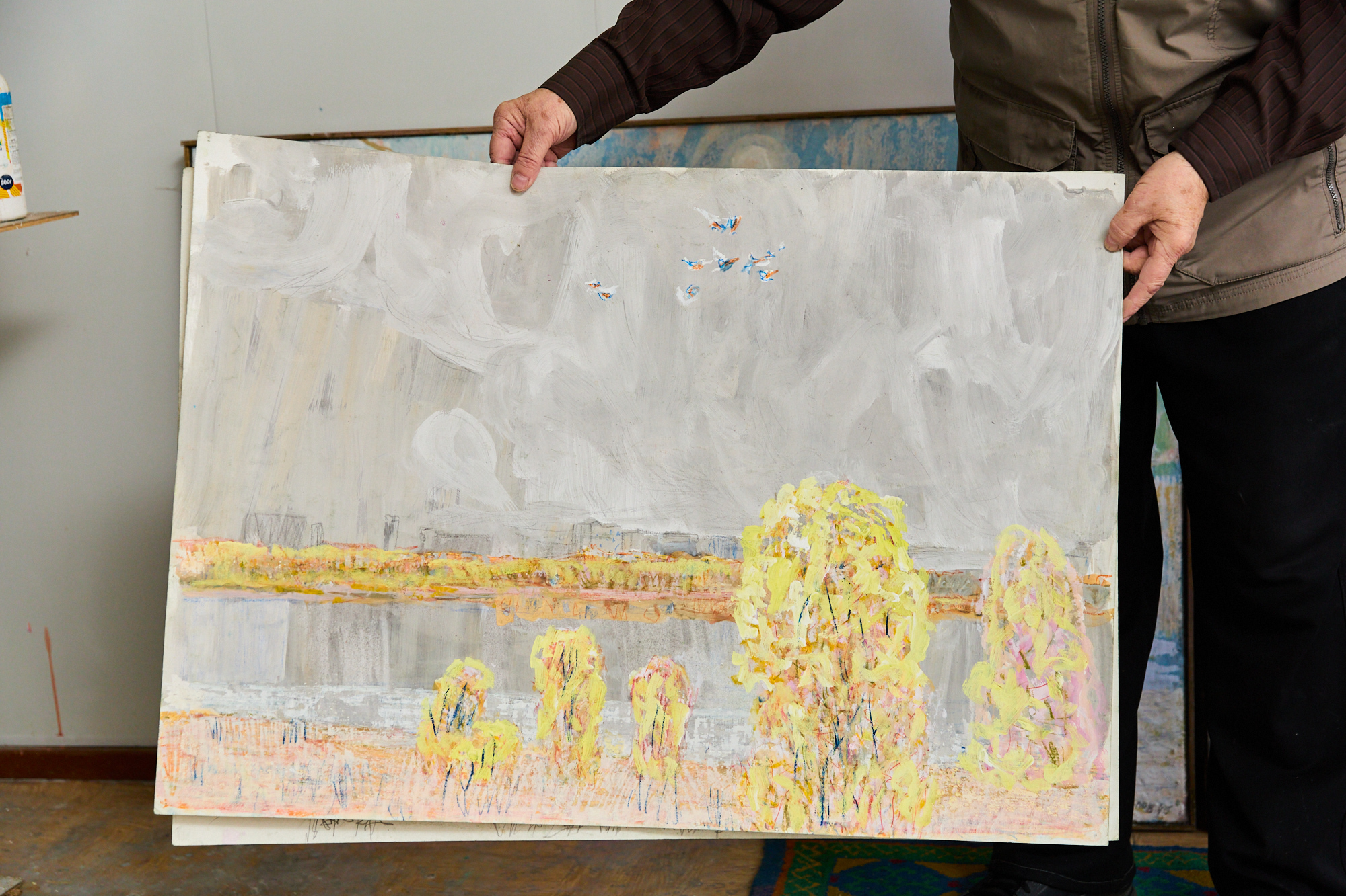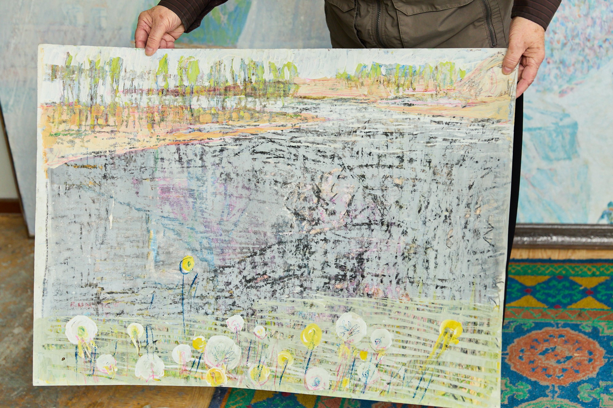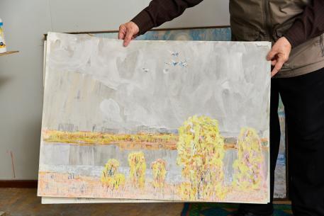 Иртыш – ещё одна излюбленная тема художника. Сейчас на его мольберте почти законченная картина, где Иртыш в главной роли – «Бурный день».