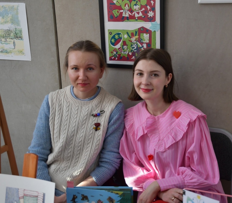 Собеседницы раньше вместе учились на худграфе, поэтому дружеско-творческий дуэт сформировался давно. Схожи и техники — графика; и настроения работ — милые, добрые сюжеты. Важный элемент — обсуждения и советы. Так удобнее работать.