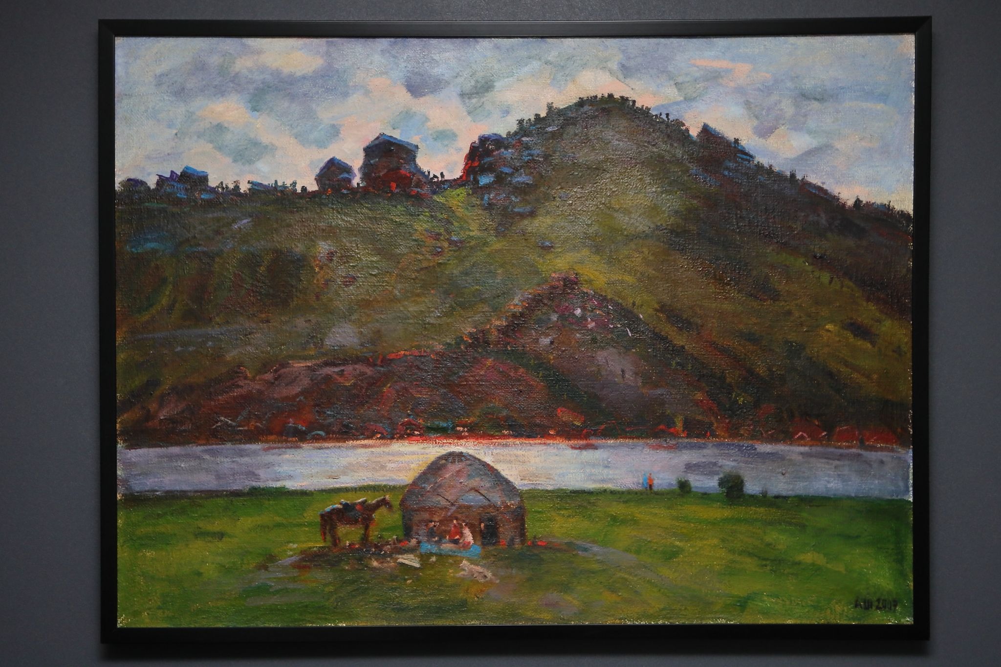 Степь на картинах Шакенова живая. Она дышит грозой, пахнет дождём, по ней проходит табун лошадей. Но сквозь эту степь и этот конкретный день как будто просвечивает то самое пространство, что было здесь тысячи лет назад, — с кочевьями, ветром и молчаливым присутствием вечности. Одно не спорит с другим. Одно просвечивает сквозь другое.