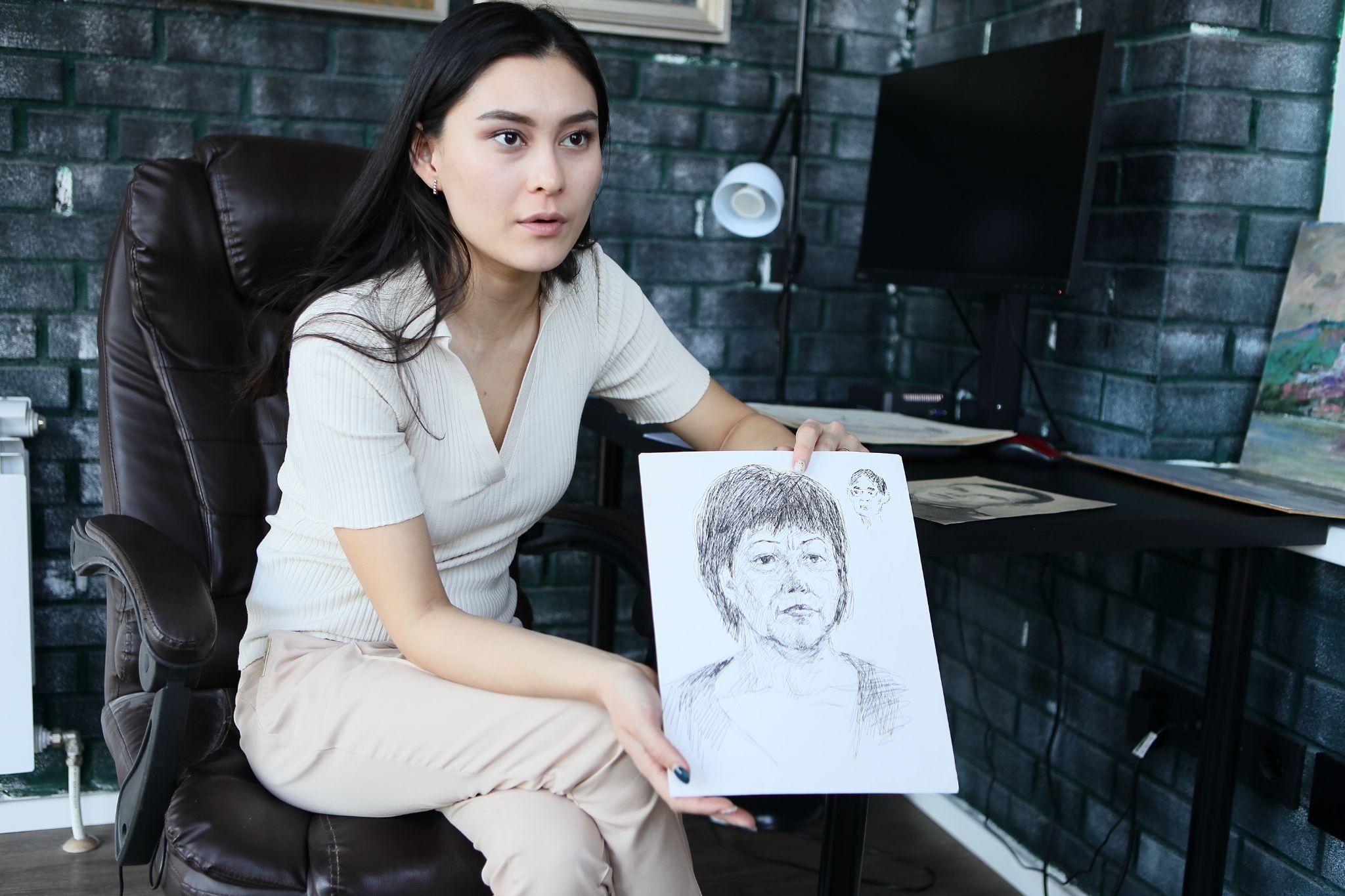 Среди работ Амангельды Шакенова портреты стоят особняком. Не потому что их много, а потому что в каждом — попытка поймать не внешнее сходство, а внутреннюю правду. Он писал людей, которых любил. И людей, которых видел впервые. Соседей, прохожих, пассажиров поезда. Никакой постановки, никакого желания приукрасить. Однажды в купе поезда он нарисовал девушку, даже не подозревая, что эта встреча изменит его жизнь.