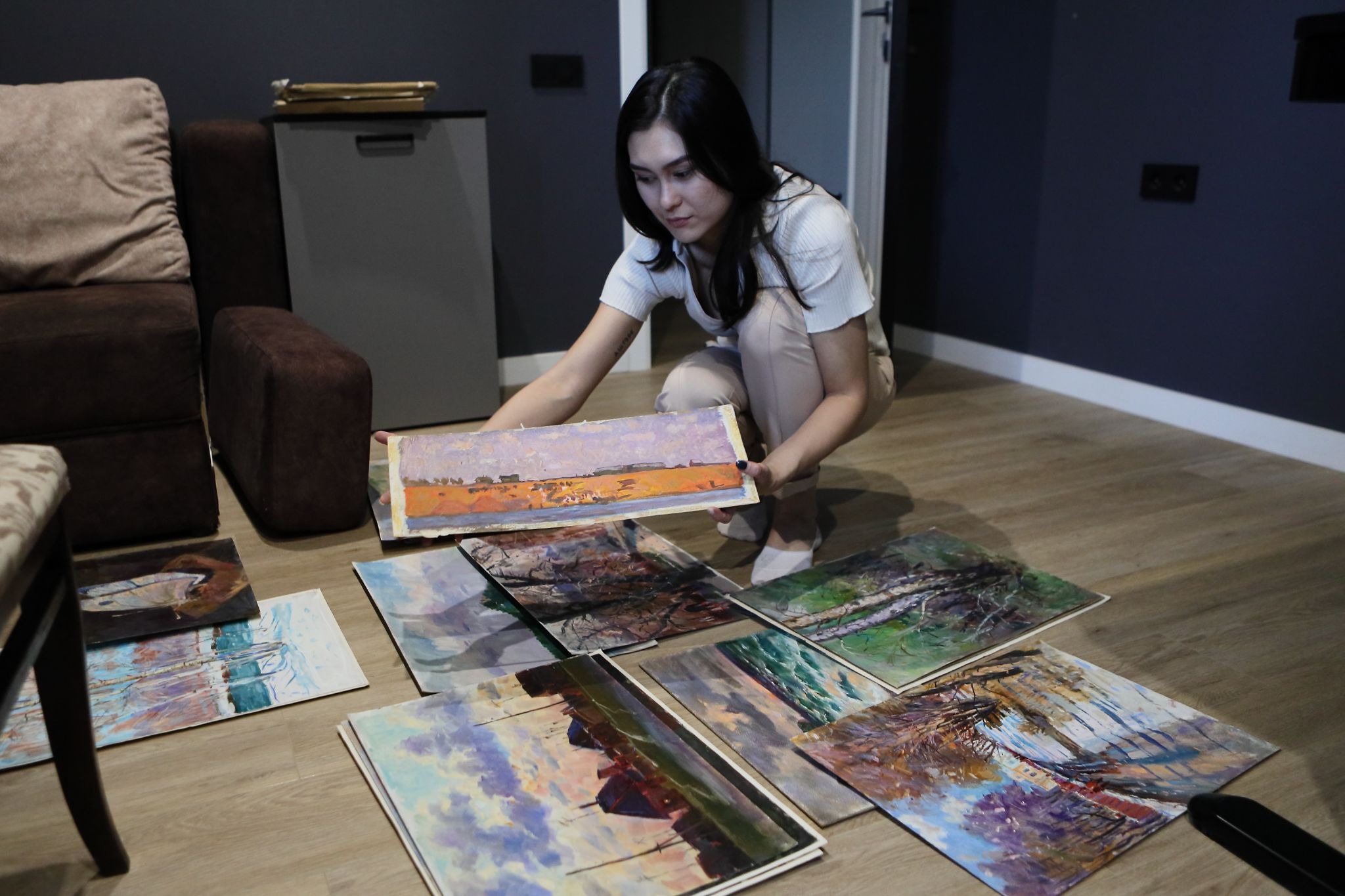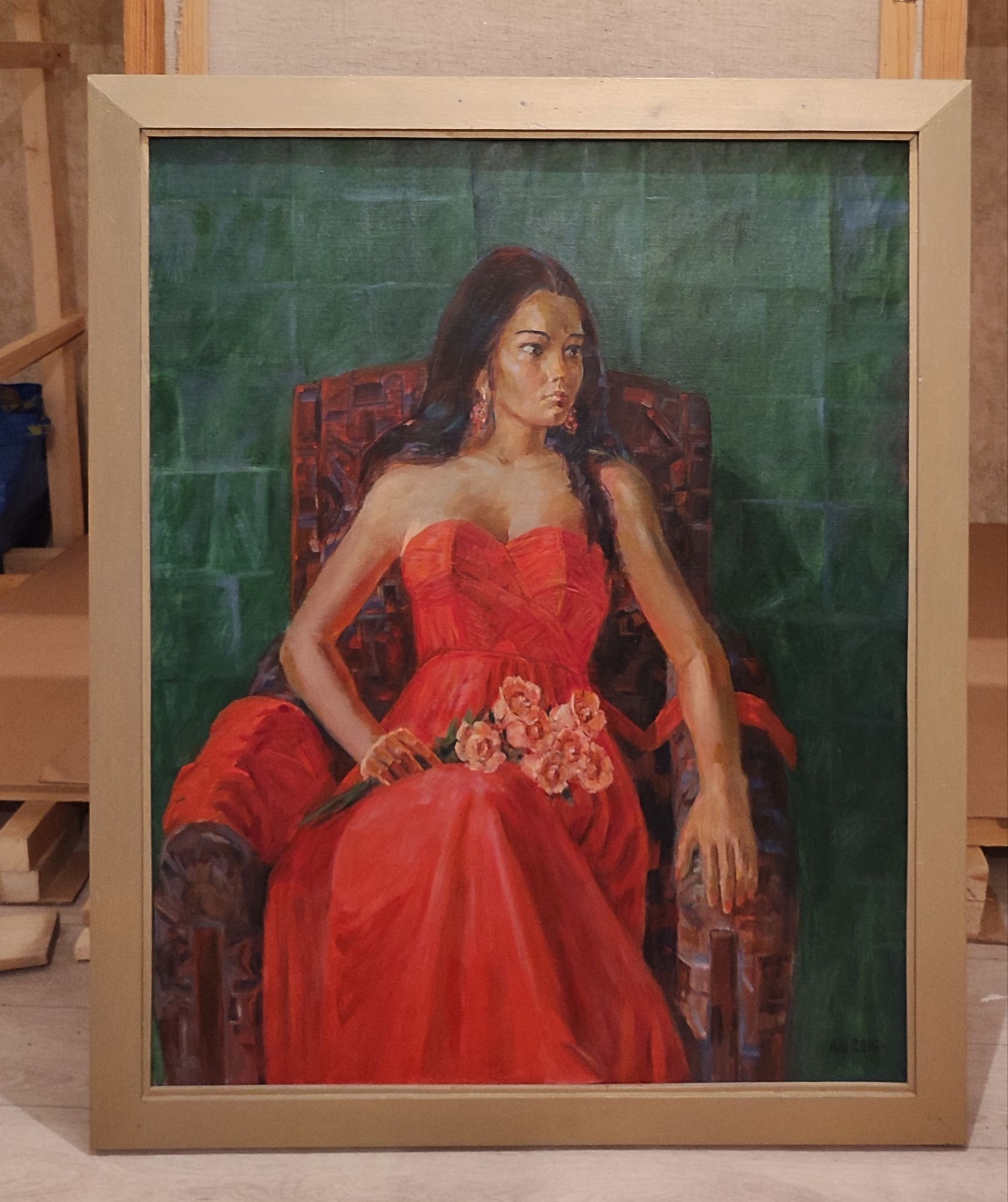 Портрет «После выпускного» — тот самый, в красном платье, — долго висел у Жамили дома. Но недавно она пересмотрела экспозицию. Свои портреты убрала. А работы отца отобрала иначе — так, чтобы они говорили о нём, а не о ней.